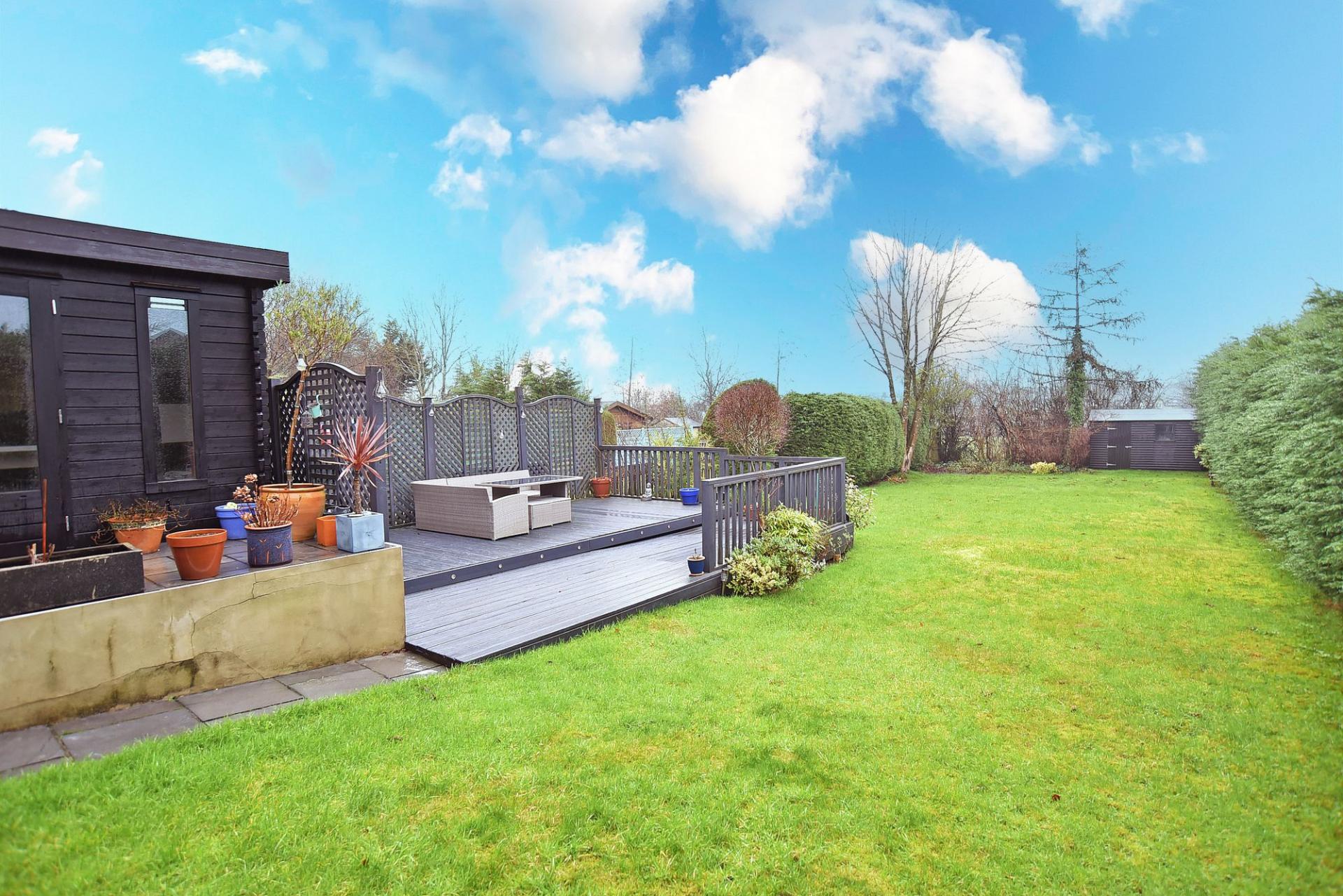 OUTSIDE The property occupies a generous plot with driveway providing off-road parking. To the rear there is a large and attractive garden with lawn, well-stocked planted borders, and paved and two different decked seating areas. The garden enjoys a delightful open aspect over adjoining school fields.