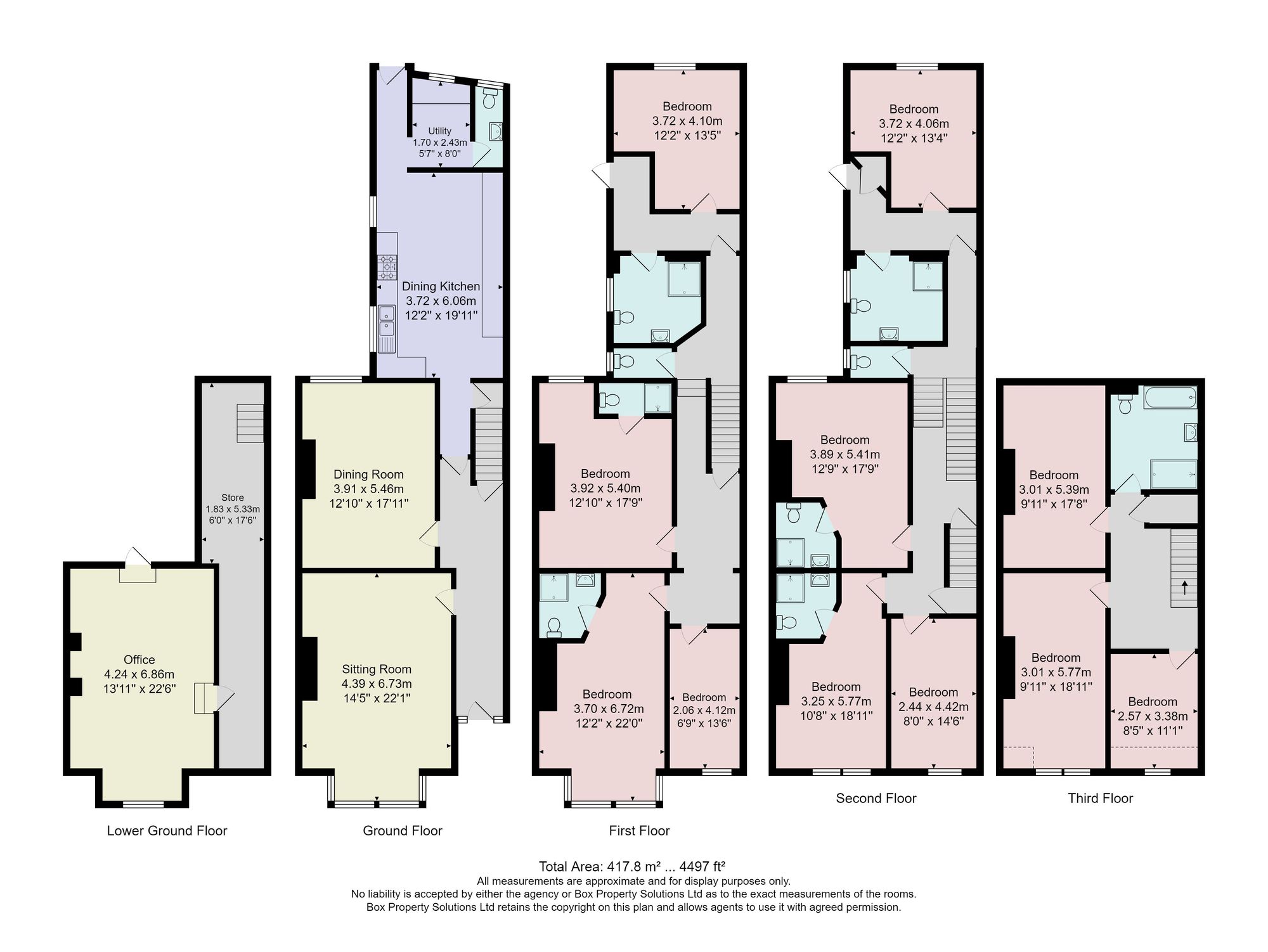 On the first floor there are three double bedrooms with en-suite shower rooms, and an additional single bedroom with separate WC.