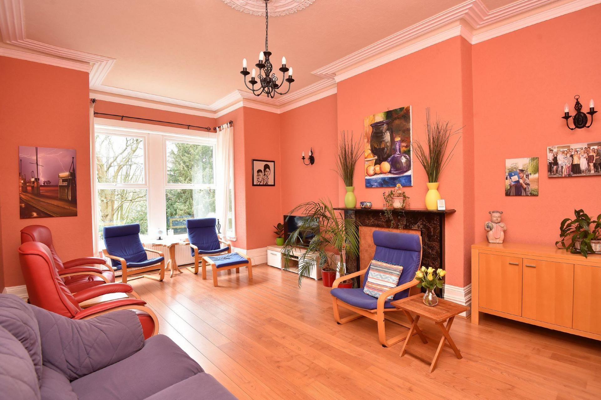 A spacious reception room with bay window overlooking the Valley Gardens and attractive feature fireplace.