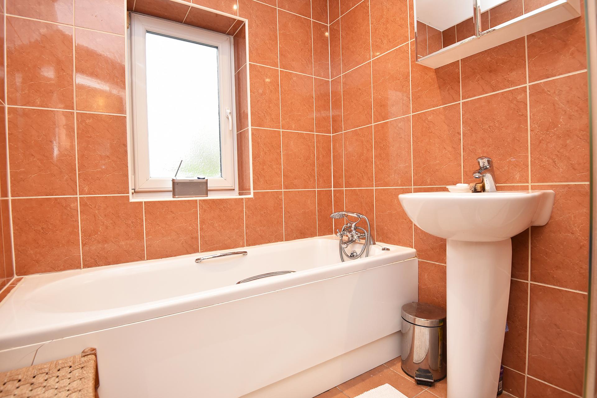There are four bedrooms on the first floor. The main bedroom has fitted wardrobes and an ornamental fireplace.