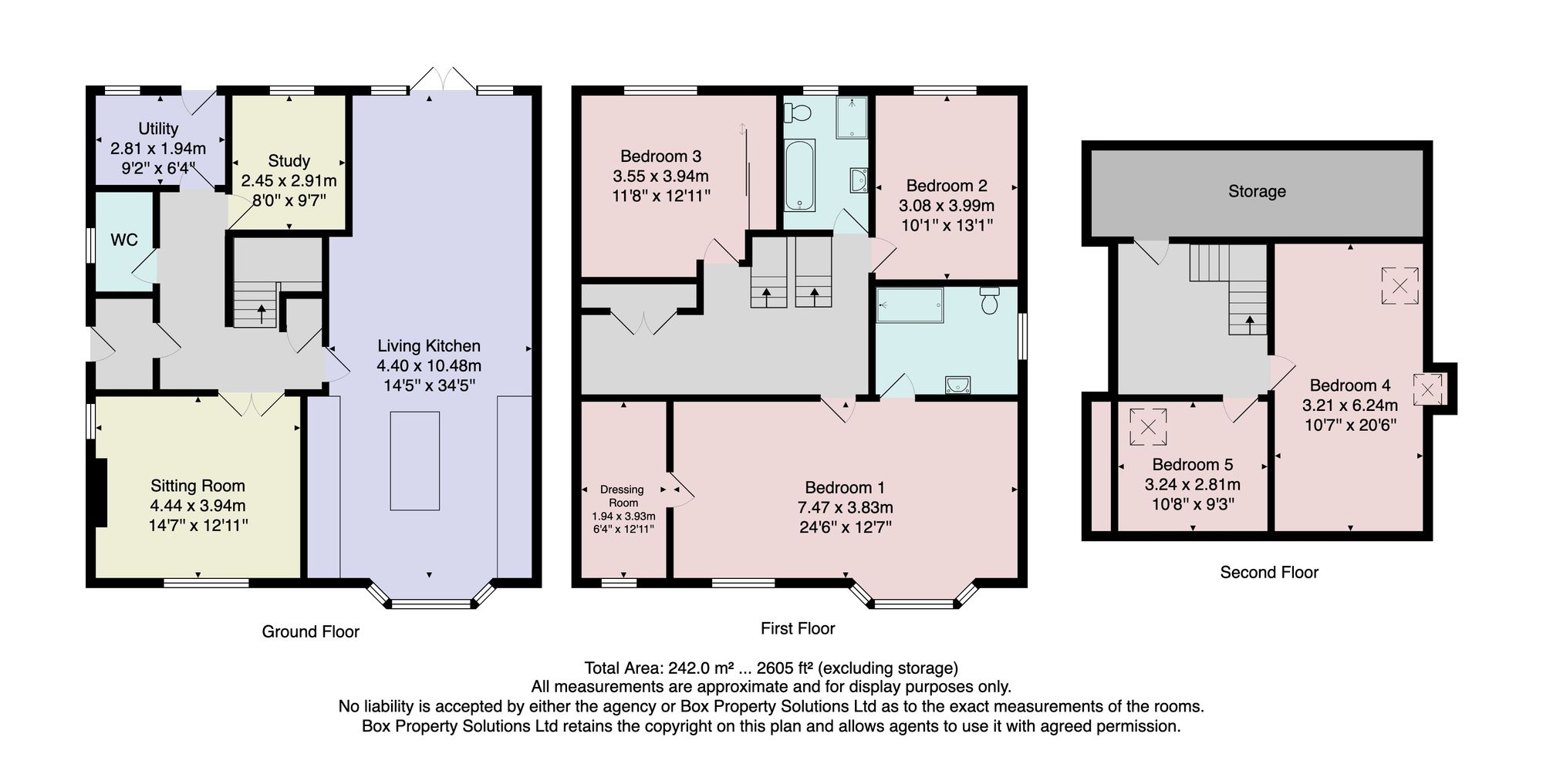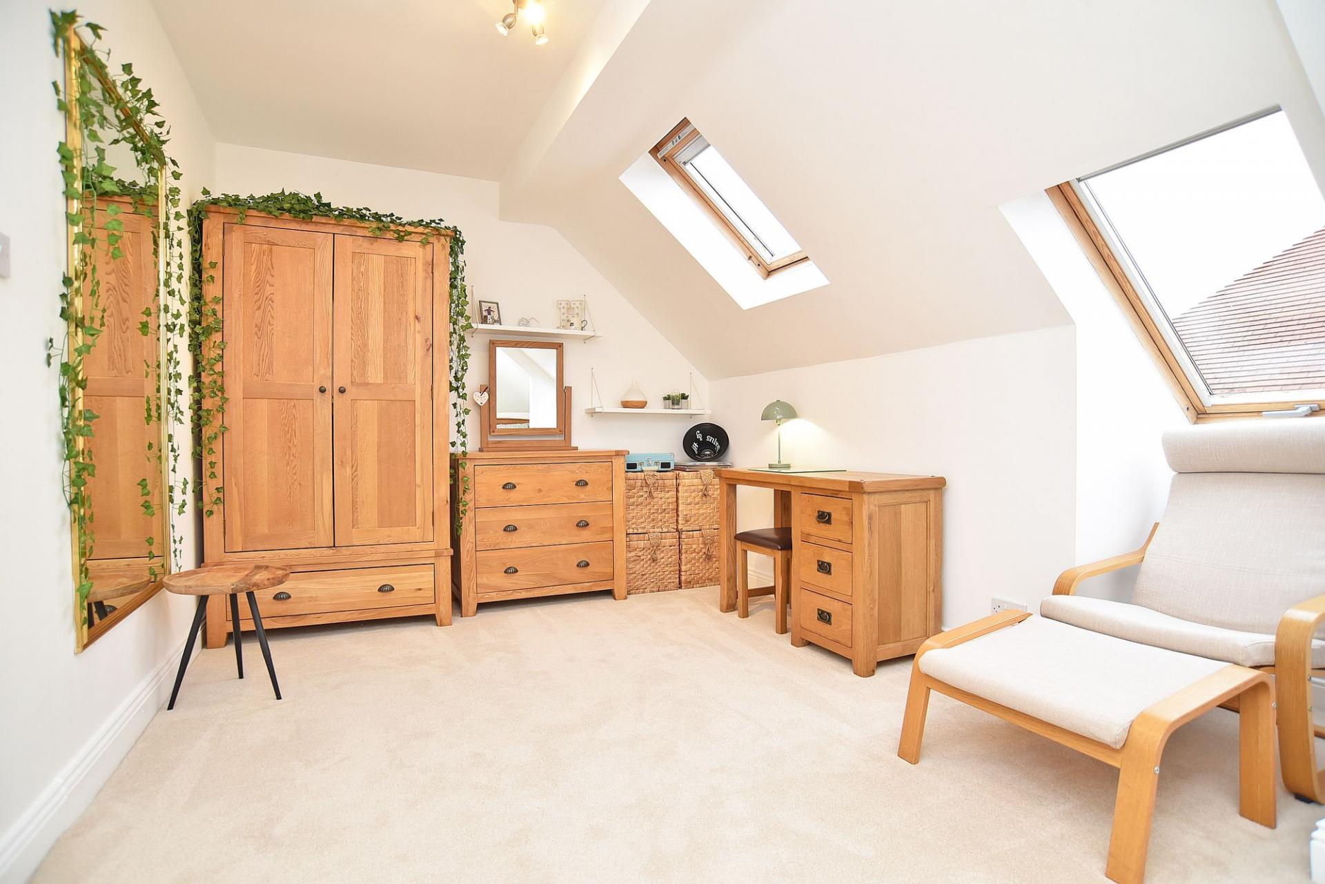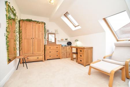 The second floor offers a spacious landing area with access to ample eaves storage and two additional double bedrooms, ideal for guests, teenagers, or home working.