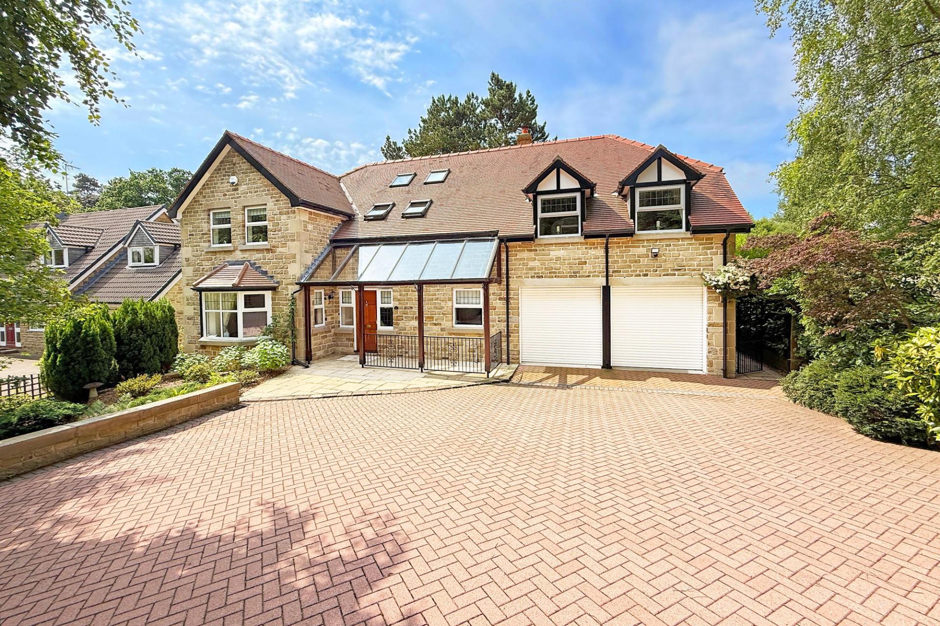 A fantastic opportunity to purchase this individual four-bedroom detached home with double integral garage and attractive south-facing gardens, situated on a quiet cul-de-sac just off Leadhall Lane in this desirable south Harrogate position. This impressive home was built 25 years ago and offers generous, high-quality accommodation. A spacious reception hall with double-height vaulted ceiling welcomed you to the property and provides access to the spacious sitting room with glazed doors overlooking the garden, a separate dining room and study / snug. There is also a dining kitchen with quality fitted kitchen units and access to the sunroom overlooking the garden. On the ground floor there is also a downstairs WC and useful utility room. Upstairs, there are four good-sized double bedrooms, bathroom and two en-suites. A driveway provides ample parking and leads to an integral double garage, and to the rear of the property there is an attractive south-facing garden with lawn and patio.