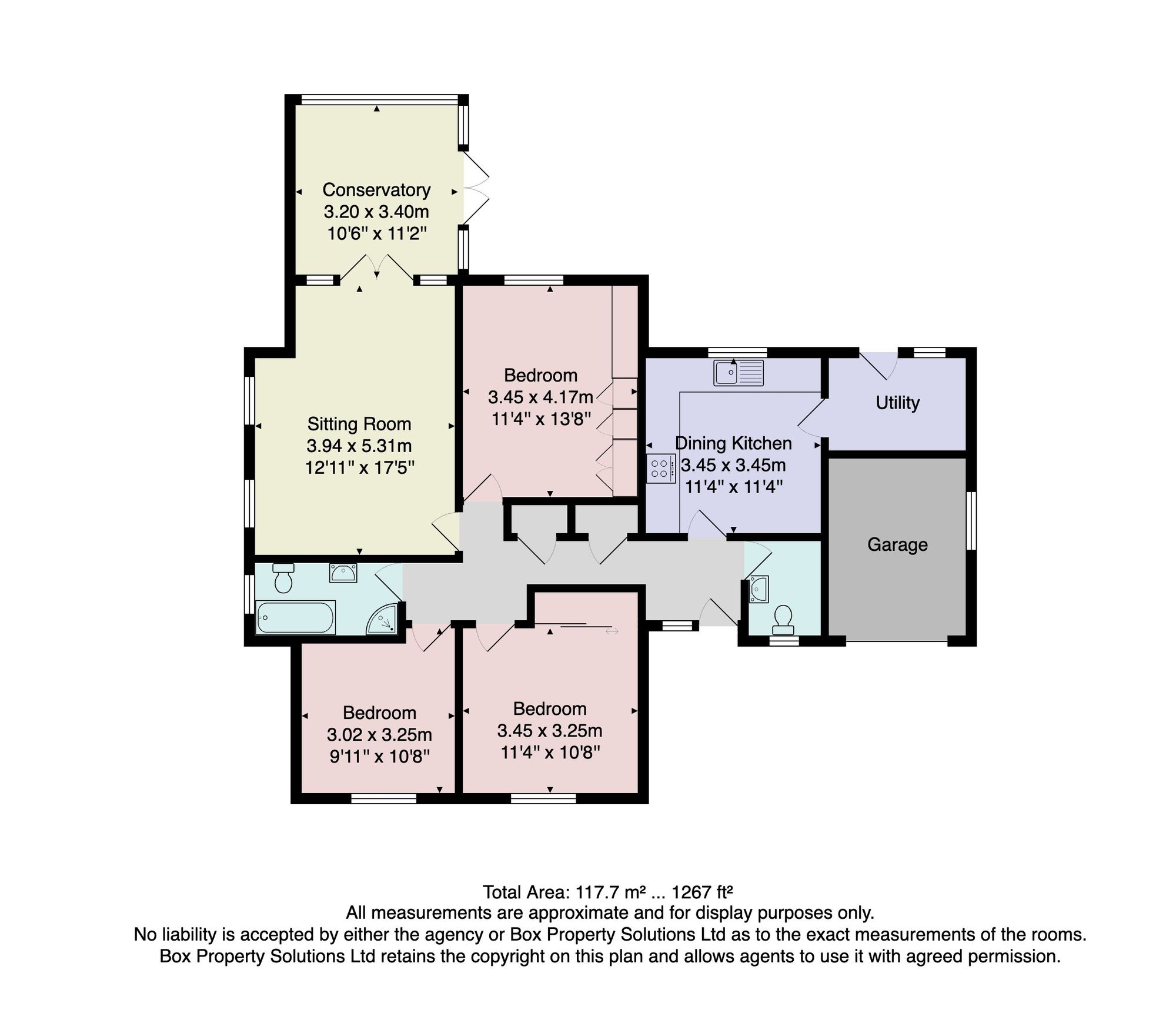 The property is appointed to a high standard and comprises a spacious reception hall with built-in storage and guest cloakroom. Living room with glazed patio doors accessing the conservatory, boasting lovely countryside views. The dining kitchen has integrated appliances and a separate utility room. There are also three-bedrooms and a family bathroom with separate shower cubicle.