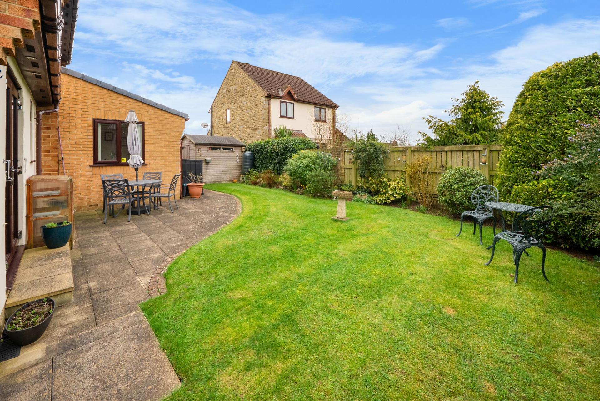 To the front of the property there is a neatly maintained lawned garden together with a tarmac driveway providing off-road parking for two vehicles.  To the rear there is a private enclosed south facing garden laid mainly to lawn with a paved patio seating area, creating a superb outdoor space for relaxing and entertaining. The garden enjoys a good degree of privacy and benefits from sunshine throughout the day and evening.  External water tap and electric points.  Timber garden shed.