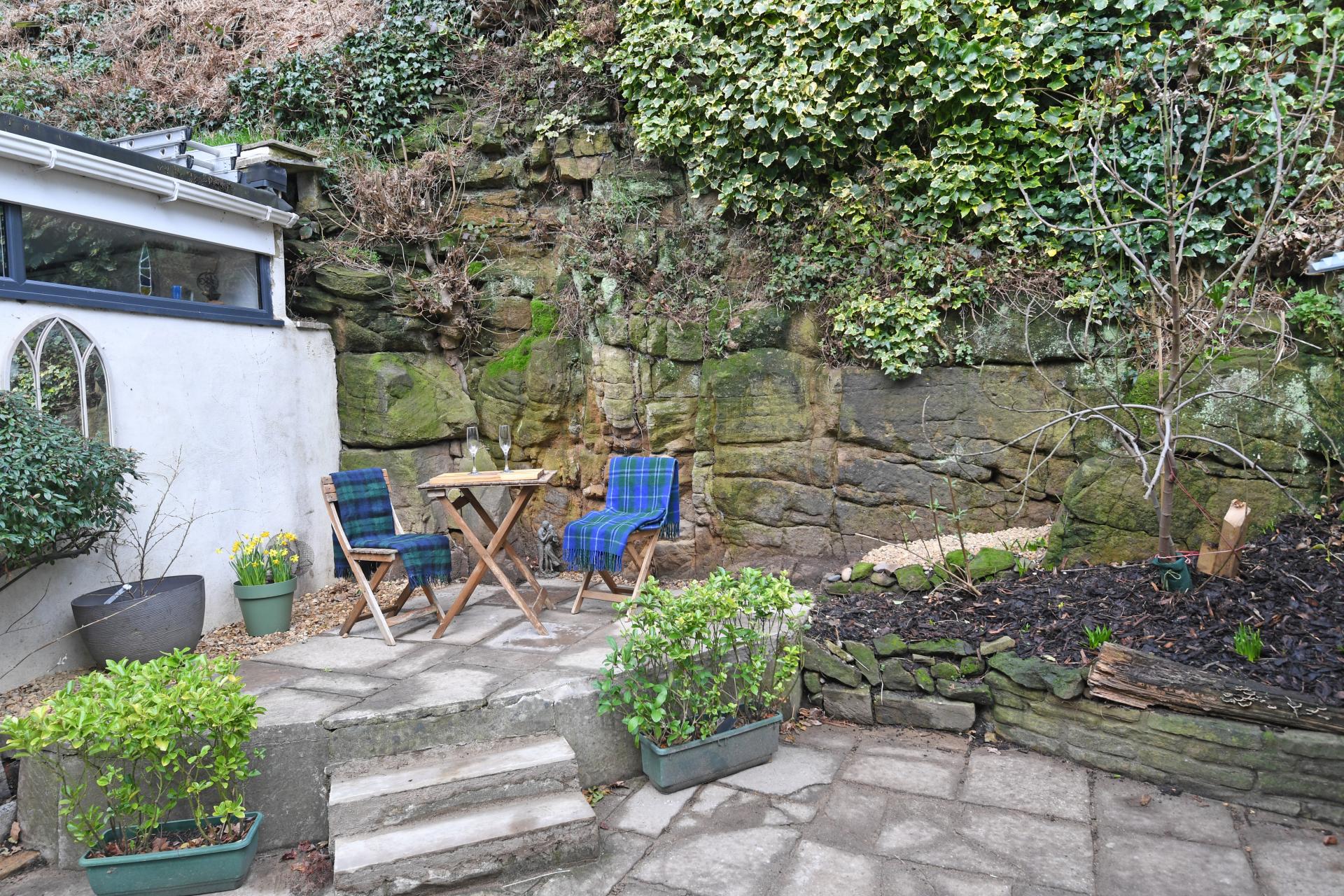 OUTSIDE Attractive paved sitting area to front with planted borders. There is a stone-flagged enclosed rear courtyard garden with raised borders and two garden sheds.