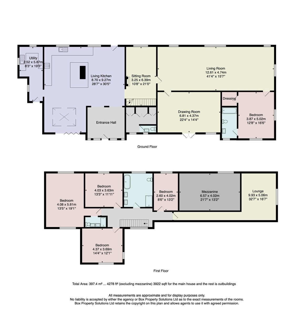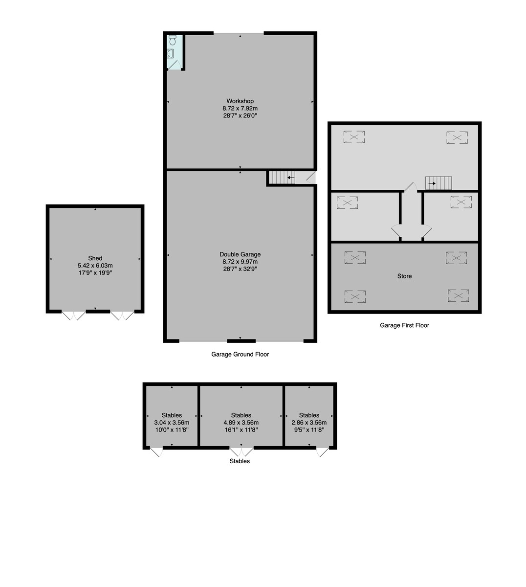 A substantial outbuilding of around 3,000 sqft offers stables, a double garage with loft storage and a workshop – a versatile complex with clear scope for leisure, lifestyle or development use.