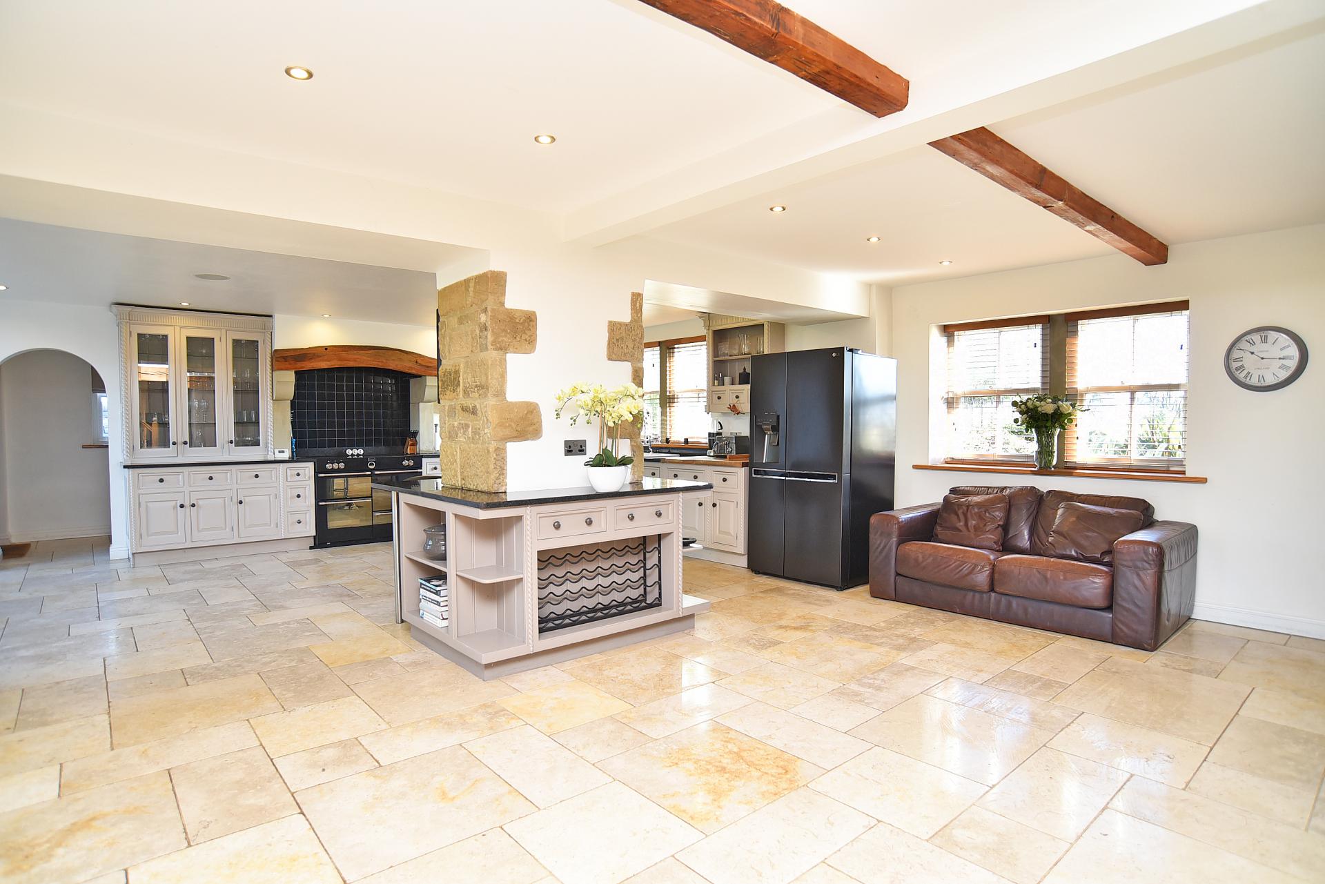 An exceptional five-bedroom detached farmhouse crafted in timeless Yorkshire stone, set within approximately 4.6 acres of landscaped gardens, paddocks and equestrian facilities. Alongside, sits 3,000 sqft of garaging, stables and workshop space, presenting exciting potential for conversion into a holiday cottage or secondary residence (subject to consent).