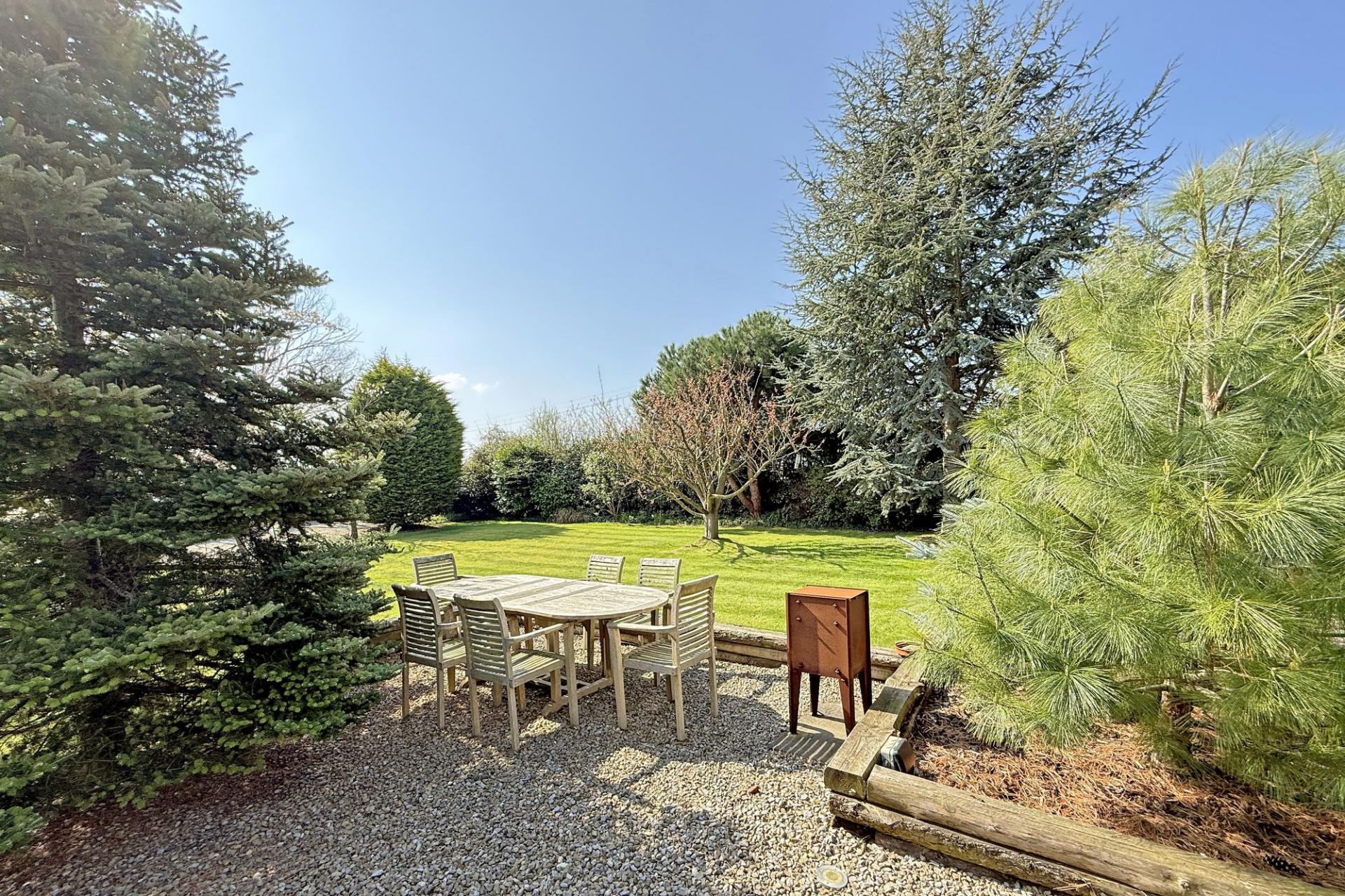 A long gravelled driveway provides ample off-road parking, including parking for a campervan / caravan, and leads to a detached double garage. There are delightful and particularly good-sized private gardens, incorporating shaped lawn, mature and well-stocked planting and seating areas.