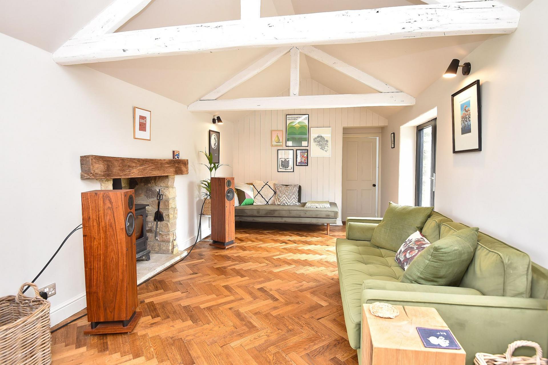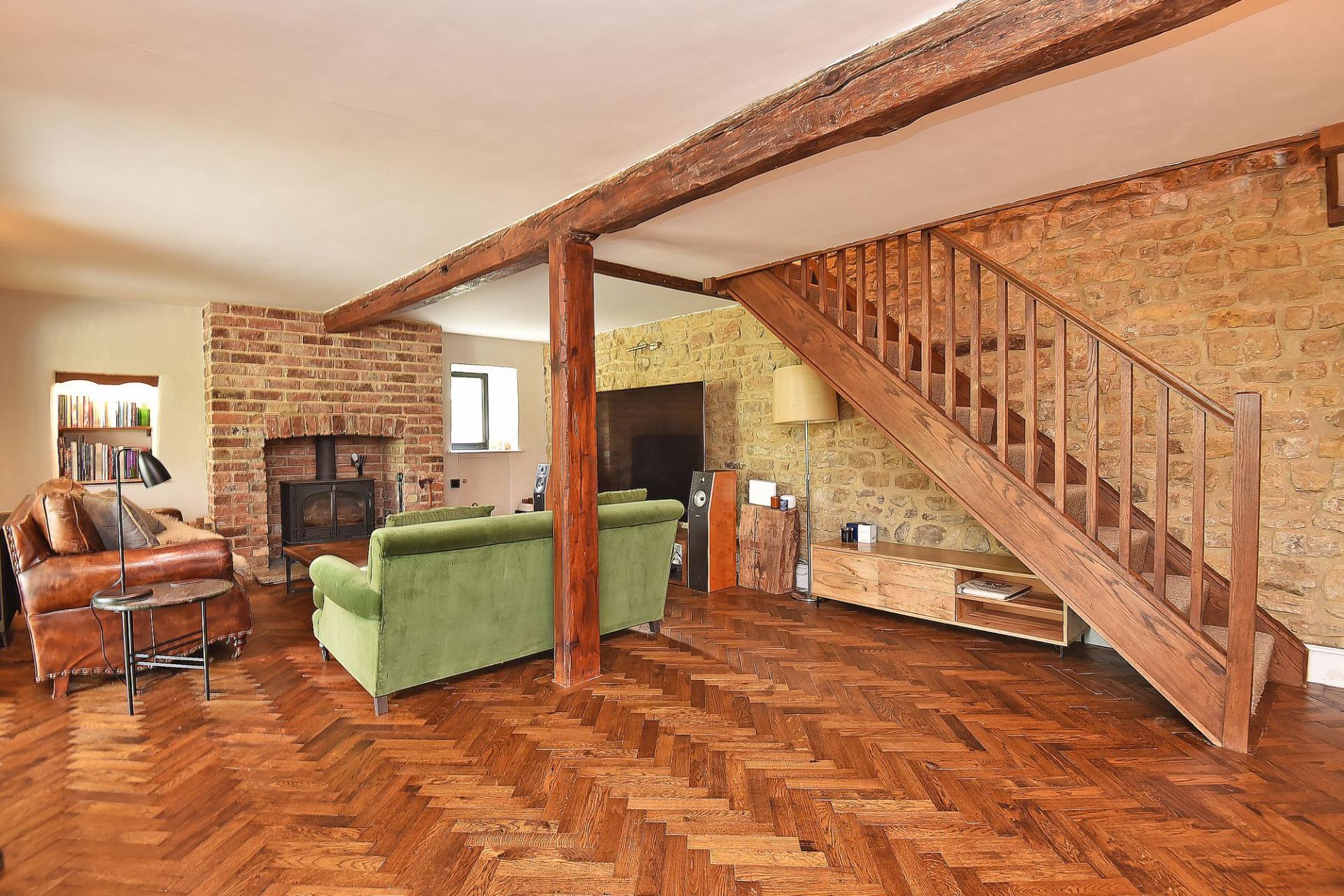 Having an exposed stone wall and log-burner. Opens to -