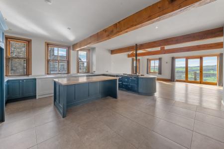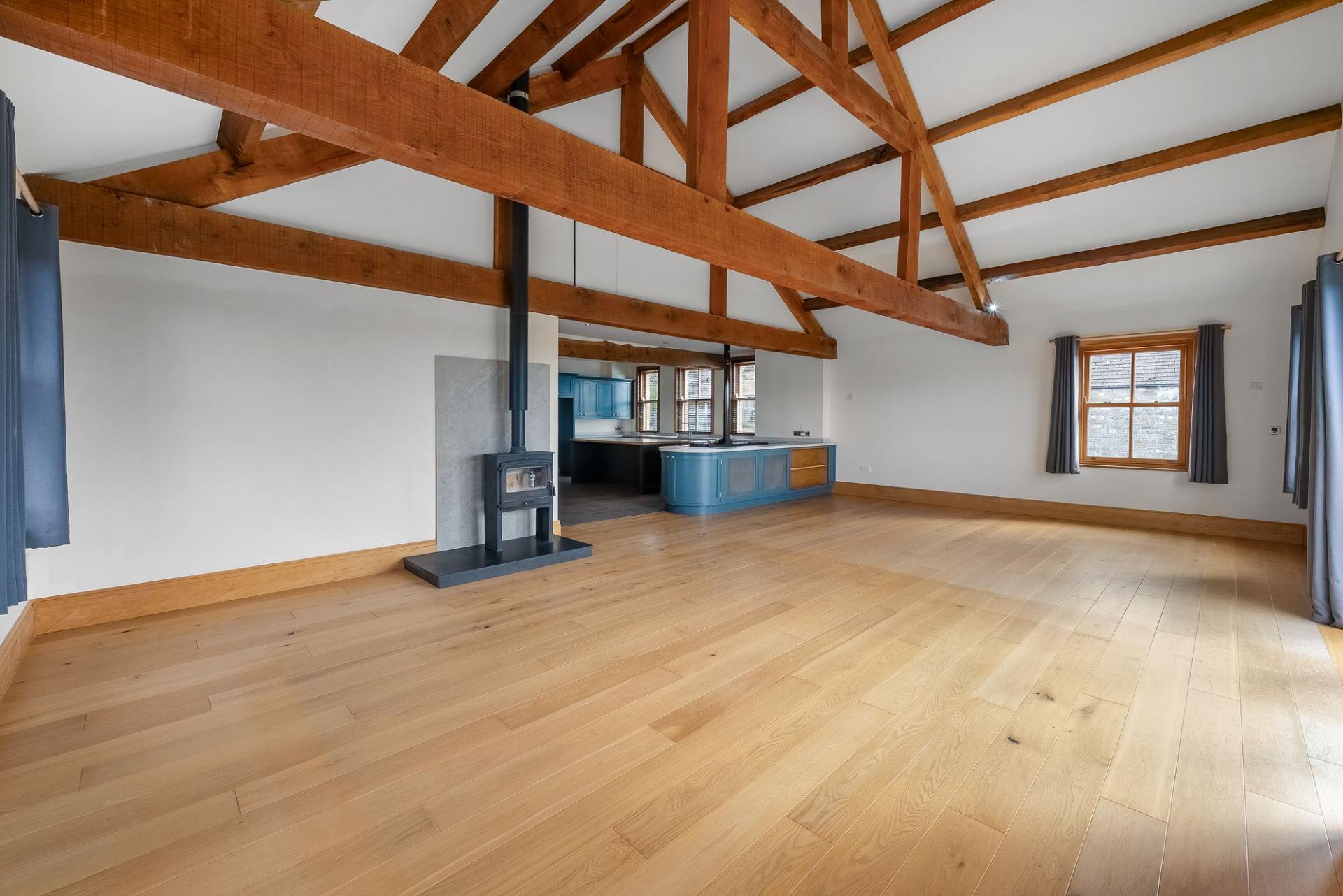 The accommodation is appointed to a high standard with modern fittings throughout, while retaining the character and scale expected of a substantial barn conversion. The centrepiece of the home is the magnificent open-plan kitchen and living space which opens directly onto the sun terrace, creating a superb area for entertaining and everyday family living.
