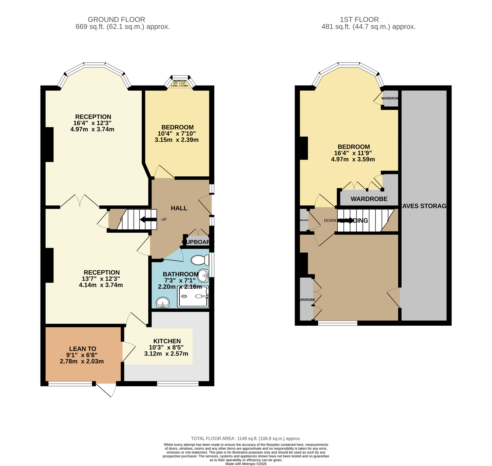 The property benefits from having flexible family accommodation with the ground floor having a two reception rooms, a double bedroom, wet room / wc, kitchen and a useful lean to storage area. The first floor has two double bedrooms with a large eaves storage. Externally, the rear garden extends to about 100' and is east facing.