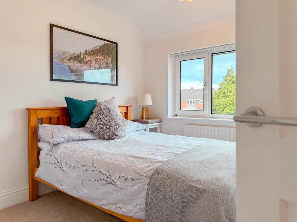To the first floor, the landing leads to three bedrooms. Bedroom one is a generous double room positioned to the rear, while bedroom two is another well proportioned double. Both benefit from built in wardrobes, offering excellent storage solutions. Bedroom three would make an ideal nursery, home office or single bedroom.