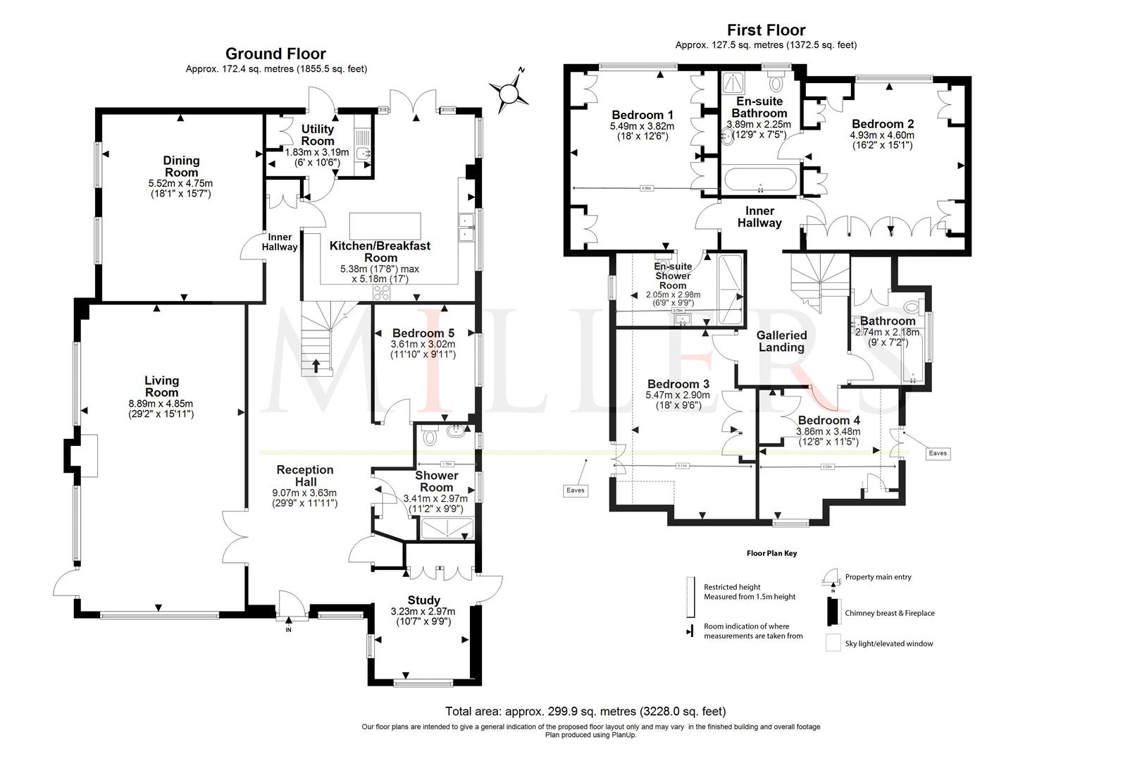 Upstairs, a galleried landing leads to two luxurious master bedrooms with en-suites, two additional bedrooms, and a family bathroom, ensuring that every member of the household has their own private sanctuary.