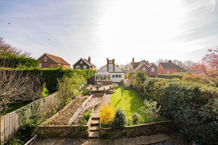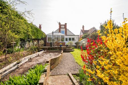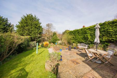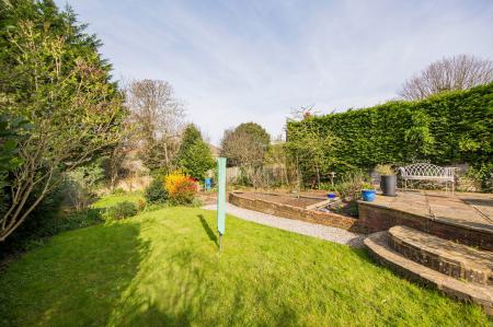 The driveway to the front provides parking for a number of vehicles and leads to the single garage with glazed double doors, side windows, power and light. The REAR garden is landscaped and features two lawned areas, a large paved patio, shrub and hedge borders plus fruit & vegetable beds. Brick-built barbeque. Timber storage shed. Greenhouse. Outside tap. Side access.