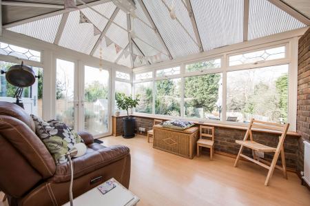 Double glazed windows with dwarf wall and door overlooking the rear garden. Wood effect flooring. Radiator.