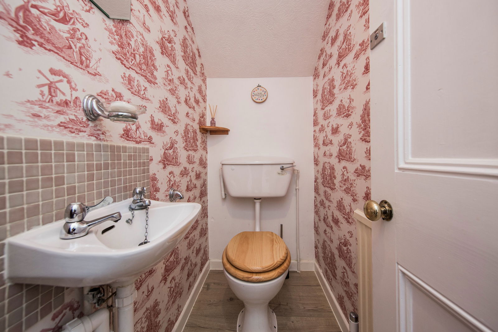 WC. Wash basin with mosaic tiled splashback. Extractor fan. Radiator.