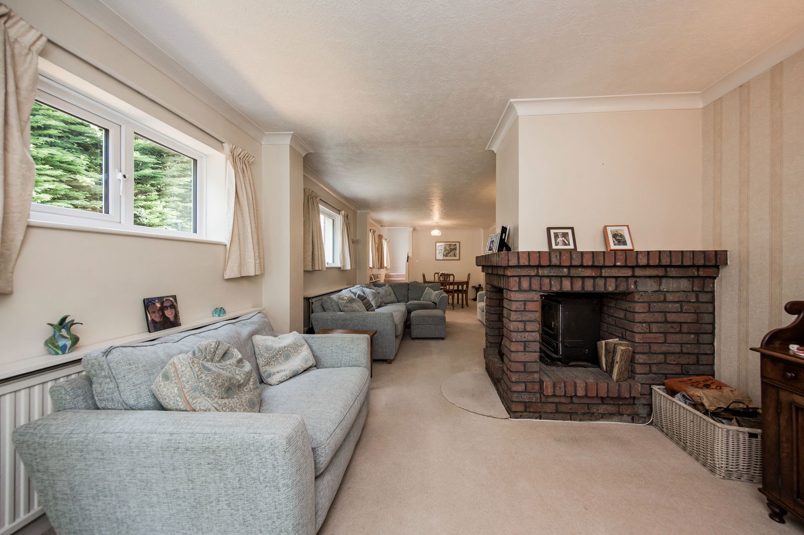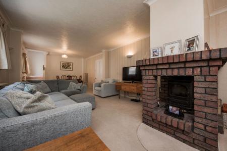 A large open plan room with wood burning stove. Coved ceiling. Radiators. Triple glazed windows and door leading to: