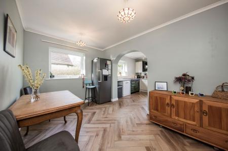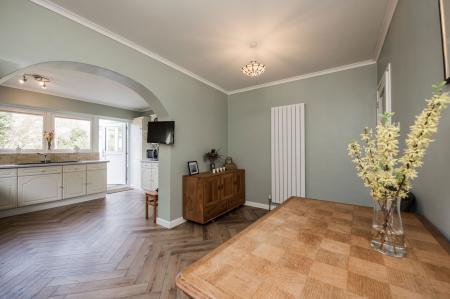 Breakfast Area: Triple glazed window. Herringbone wood effect flooring. Coved ceiling. Upright Radiator.