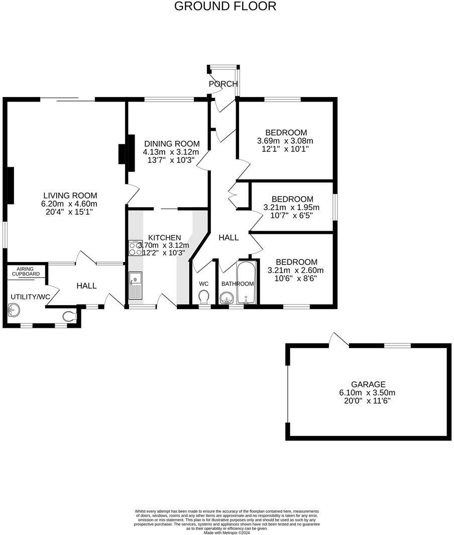 The spacious living room, with large patio doors provide direct access onto the patio and garden, also has a fireplace, access to the dining room as well as well as a front entrance vestibule with toilet. There are two double bedrooms, which offer plenty of space to accommodate furniture and a single bedroom. The garage provides ample storage space or secure parking.