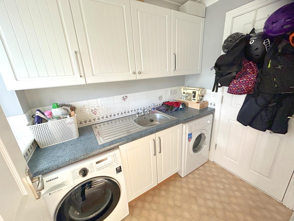 Utility Room - 2.06m x 1.52m (6'9" x 5') - A practical space with a working top surface incorporating a sink with side drainer and mixer tap over with cupboards under and matching wall units over. Spaces are provided for a washing machine and a dryer. Internal window to sunroom, vinyl flooring and door to garage.