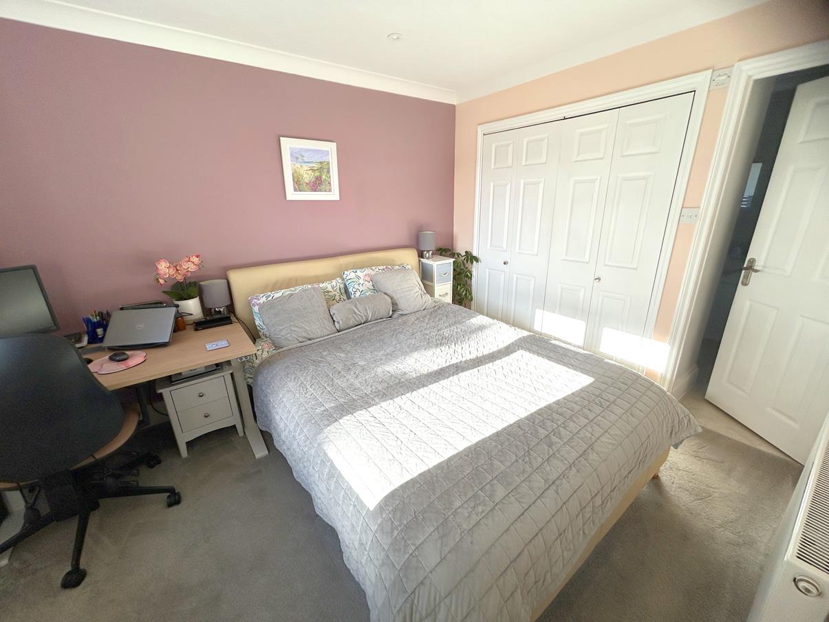 Bedroom Two - 3.38m x 3.28m (max measurement) (11'1" x 10'9" (ma - Double bedroom with built-in wardrobe having sliding doors, hanging rail and storage over, window to rear aspect and door to
