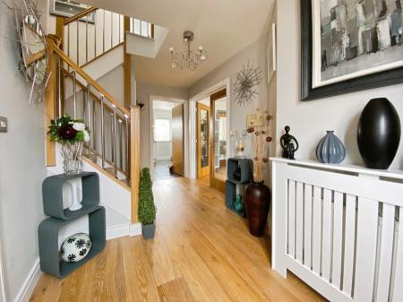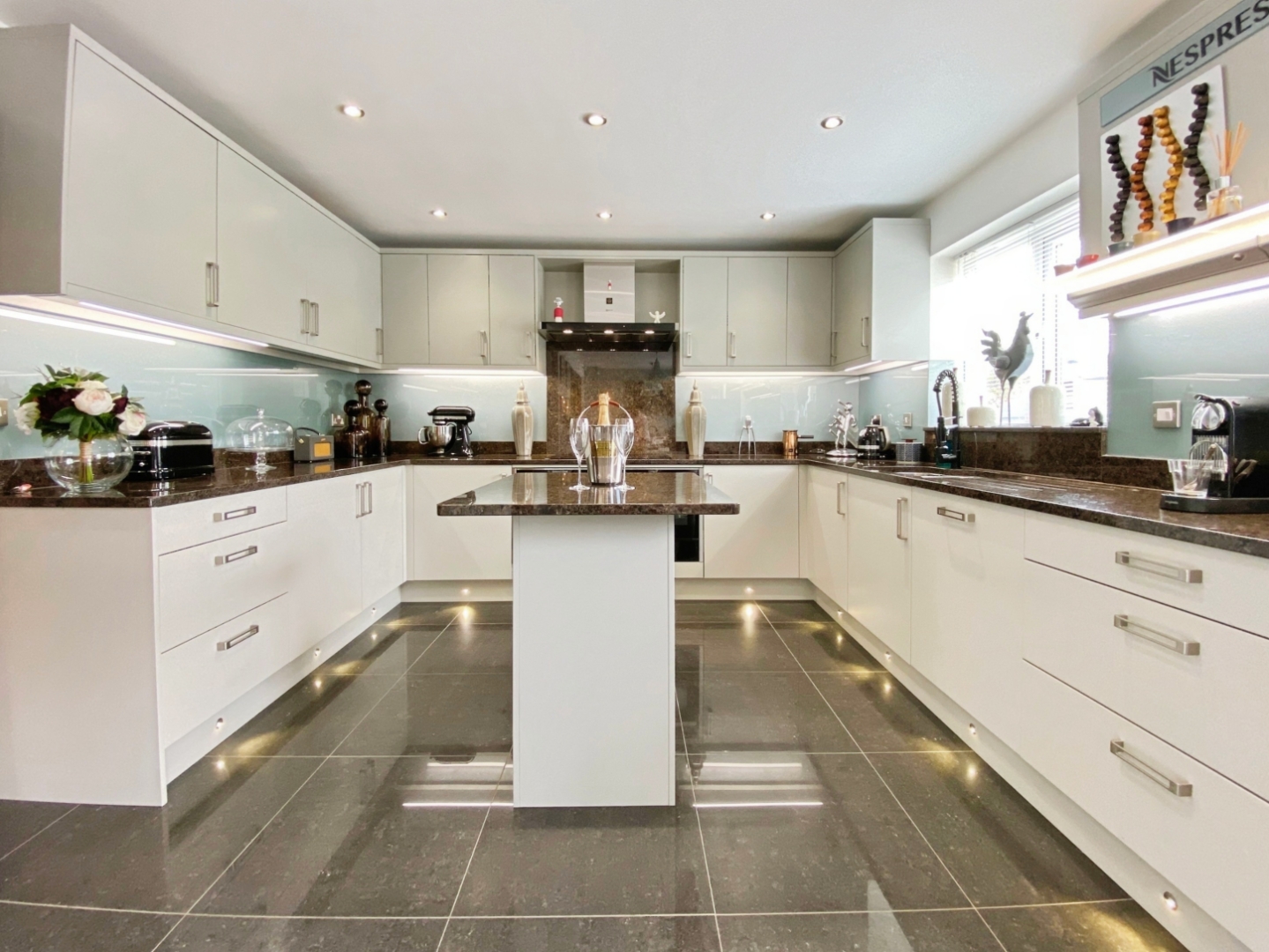 Specification - The property boasts a beautifully designed bespoke kitchen featuring premium Neff appliances, including a five-ring induction hob with matching extractor, double oven with warming drawer along with a microwave combination. A dishwasher, integrated freezer, and a bespoke Nespresso bar complete the space, all finished with elegant granite worktops and custom cabinetry. The interiors are enhanced by engineered oak flooring throughout the hallway and lounge, complemented by luxurious Villeroy & Boch polished porcelain tiles in the kitchen and bathroom, creating a seamless blend of style and sophistication.