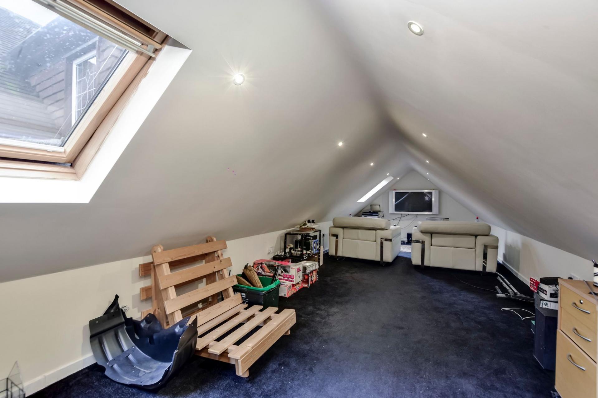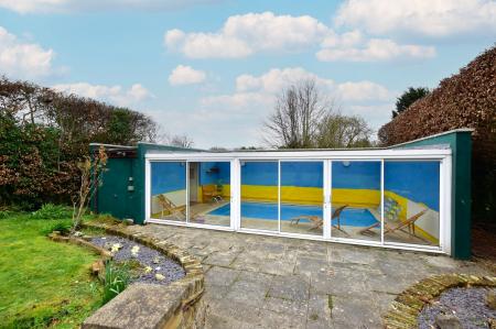 Externally, the South-facing rear garden is a real highlight. This particularly private hedge lined space is made up of a mixture of lawned and patio areas, making it ideal for families and gardeners alike. To the rear is an indoor heated swimming pool which has been well maintained by the current owners - new boiler and lining recently installed - providing additional leisure amenities. Side access leads to the front of the house, where there is a large driveway providing parking for numerous vehicles, making it perfect for households with multiple cars or visitors. Additionally, there is an oversized garage, which not only offers extensive storage and parking options but also boasts a superb storage room above.