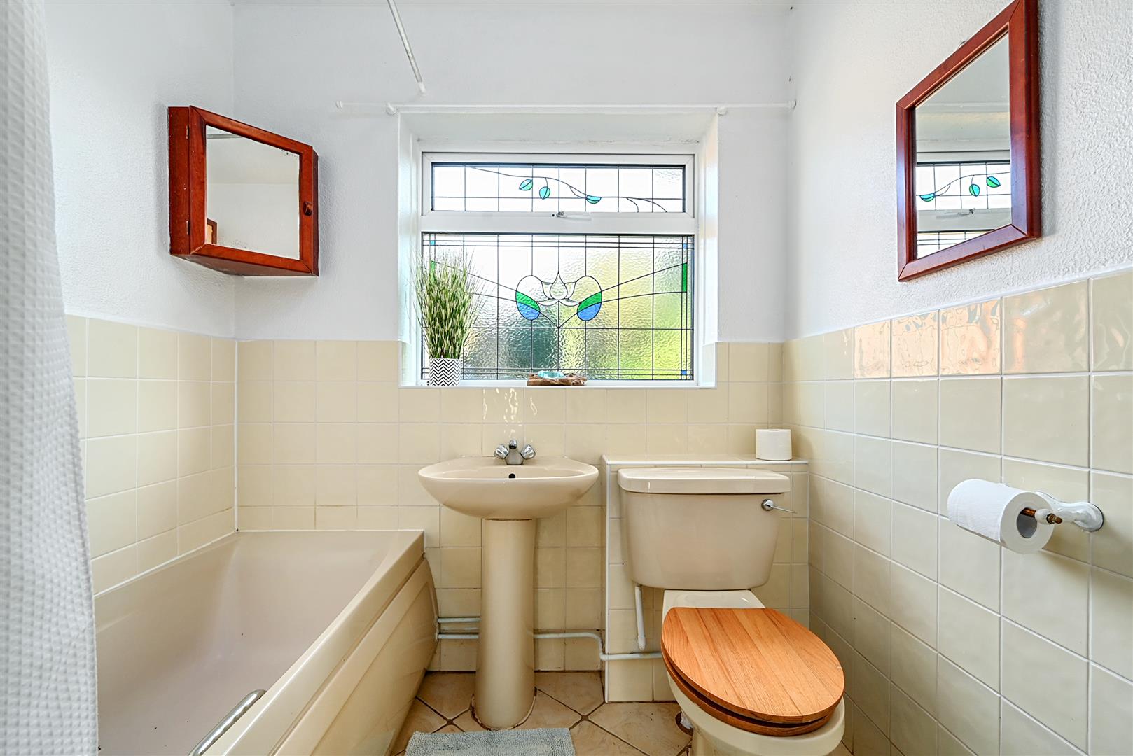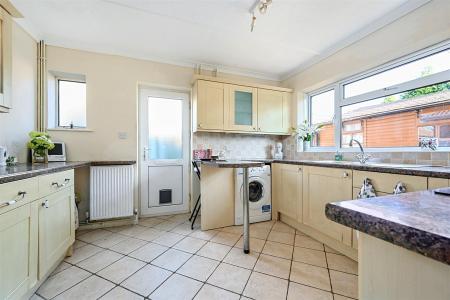 Upon entering, you will find a large living room that extends to 15'9" at the bay window, featuring an inviting open fireplace. The bright kitchen offers a pleasant view of the rear garden and includes ample work surface space, both floor and wall-mounted storage, as well as a convenient breakfast bar. The bungalow boasts two double bedrooms and a family bathroom, which is finished in a half-tile pattern. While the property could benefit from some modernisation, the potential for improvement is vast, including the option to extend into the roof space, as many nearby homes have done (STNC).