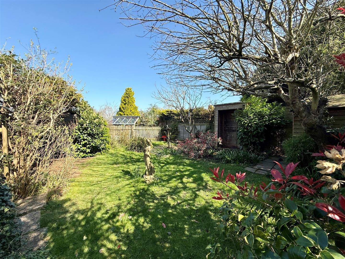 The property is accessed through a set of picket gates, enhancing its character and charm. It is further sheltered from the street, by a privet hedge and mini orchard providing additional privacy.