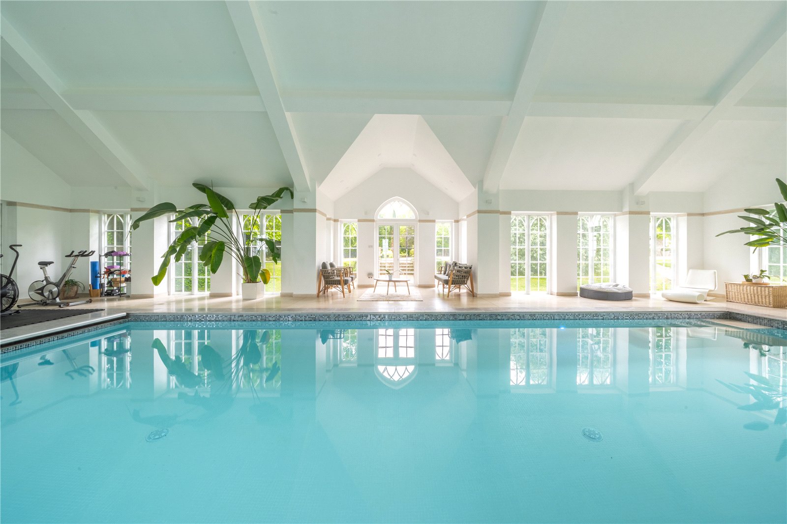 Outside the property is just as beautiful to behold and has a large detached pool house and a garage with a workshop and stables, which may be able to be converted subject to planning.