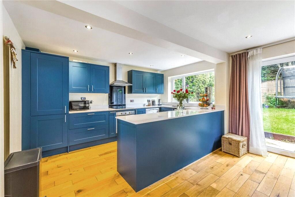 Enjoy modern family living in this attractive FOUR BEDROOM DETACHED home, ideally offered for sale with NO UPPER CHAIN, making it a perfect choice for a smooth and straightforward move.The property welcomes you via a front door into a bright entrance vestibule, complete with a convenient cloakroom. From here, you are led into a beautifully designed open-plan kitchen benefitting from new appliances and worktops in 2024, living, and dining area—the true heart of the home. This versatile space is finished in a contemporary style and provides ample room for both everyday family life and entertaining guests. Large patio doors open directly onto the northwest-facing rear garden, allowing natural light to flood the space while seamlessly connecting indoor and outdoor living.