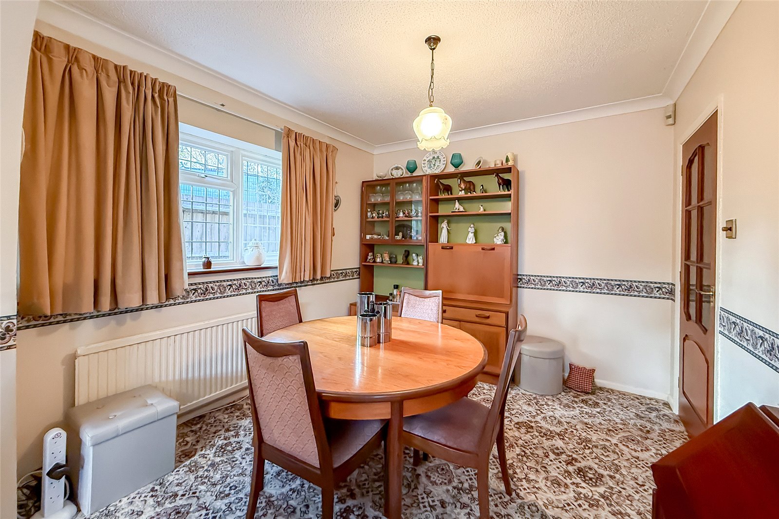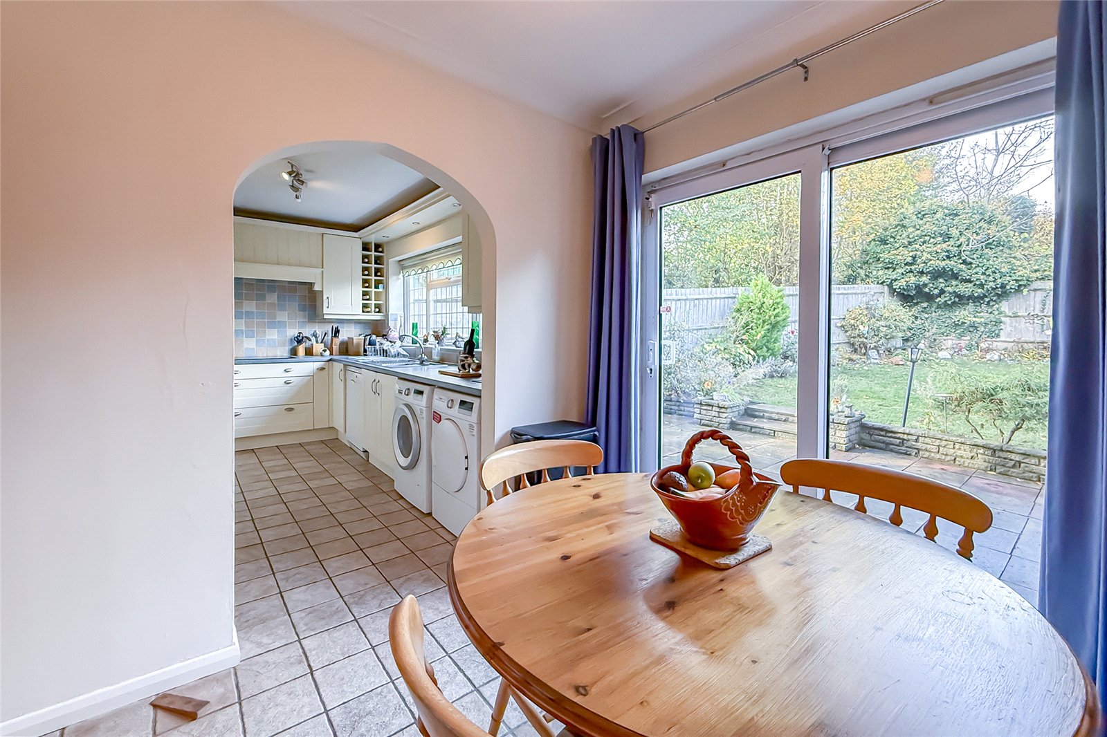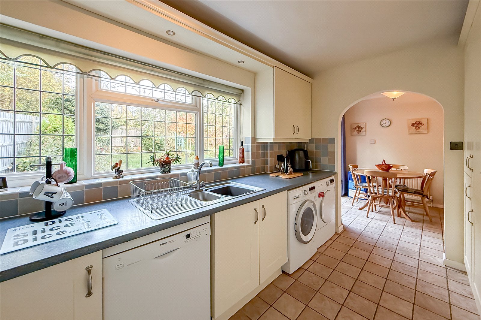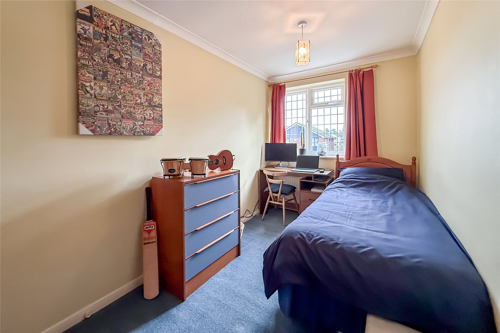 Nestled in a peaceful and highly sought-after family-friendly cul-de-sac, this four-bedroom home offers over 1,400 sq. ft of flexible and well-planned living space, perfect for modern family life. Combining spacious interiors, generous storage, and a lovely garden, this property provides both comfort and convenience in an ideal location.Upon entering, you are welcomed into a bright and airy entrance hall, featuring a handy WC and useful understairs storage ideal for coats, shoes, and everyday essentials. Doors from the hall lead into the heart of the home: a delightful breakfast area, bathed in natural light, with sliding doors that open directly onto the rear garden. This space flows seamlessly into a well-equipped kitchen, offering plenty of workspace and storage for the keen home cook.For more formal entertaining, a separate dining area leads to a large, bay-fronted living room, providing a comfortable and inviting space for family gatherings or relaxing evenings. The layout effortlessly balances practical living with areas for socialising and entertaining.Upstairs, the property boasts four generously proportioned bedrooms, each offering ample storage. The principal bedroom enjoys a modern en-suite bathroom, while the remaining bedrooms share a further well-appointed shower room, catering perfectly for family living.The rear garden boasts paved and lawn areas, mature shrubs, and trees, creating a private outdoor space ideal for children, pets, or alfresco dining. A convenient door from the garden provides direct access to the garage. The front of the property features a driveway offering off-road parking, a garage, and a lawn area, enhancing the home's kerb appeal.This home is perfectly positioned for families, being close to well-regarded schools, including Crabtree Infant and Junior School. It is also within walking distance of the mainline station and the town centre, which offers a wide variety of shopping, dining, and leisure facilities.With its combination of space, practicality, and location, this property presents an exceptional opportunity for families seeking a home that caters to every need while offering a quiet, community-focused setting.