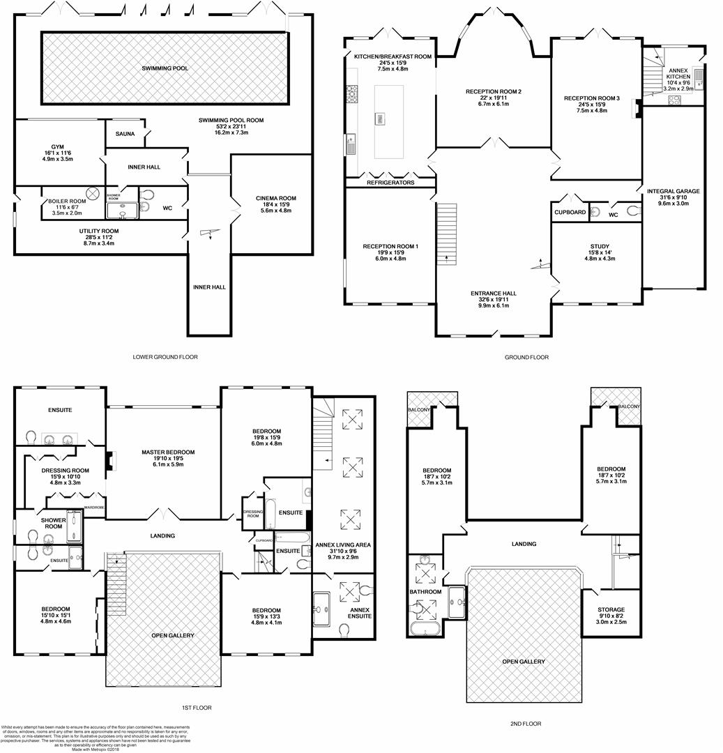 Situated behind private gates on one of Radlett's most coveted roads, this remarkable family home is a true masterpiece of design and craftsmanship. Offering in excess of 9,300 sq. ft. of living space on a beautifully landscaped plot approaching half an acre, the property combines elegance, scale, and luxuryall just a short walk from Radlett's vibrant high street, mainline station, boutique shops, and places of worship.A sweeping carriage driveway sets the tone for this exceptional residence, providing extensive parking and access to the integral garage. The grand entrance hall, measuring an impressive 36 feet, features a breathtaking full-height vaulted ceiling that floods the space with natural light and showcases staircases leading to the upper floors and the magnificent leisure level below.The ground floor is thoughtfully designed for both family living and entertaining, boasting three elegant reception rooms, a large study, a stunning kitchen/breakfast room, and a guest cloakroom. There is also a separate annex with its own kitchen, providing flexibility for guests or extended family.The lower ground floor is a haven for relaxation and recreation, featuring a state-of-the-art cinema room, a fully equipped gym, a sauna, and an extraordinary 53-foot indoor swimming pool with bi-fold doors that open onto the landscaped gardens. Additional facilities on this level include a shower room, WC, boiler room, and utility area.On the first floor, four generously proportioned double bedrooms each benefit from luxurious en-suite bathrooms. The magnificent principal suite is complemented by a bespoke dressing room. A self-contained annex to the side offers its own kitchen, living area, bedroom, and bathroomideal for an au pair or visiting guests.The second floor provides two additional bedrooms, a family bathroom, a storage room, and private balconies to both rooms, offering serene views over the grounds.This outstanding home is further enhanced by an array of high-end features, including underfloor heating throughout, a comprehensive security and CCTV system, integrated audio-visual distribution, and much more.