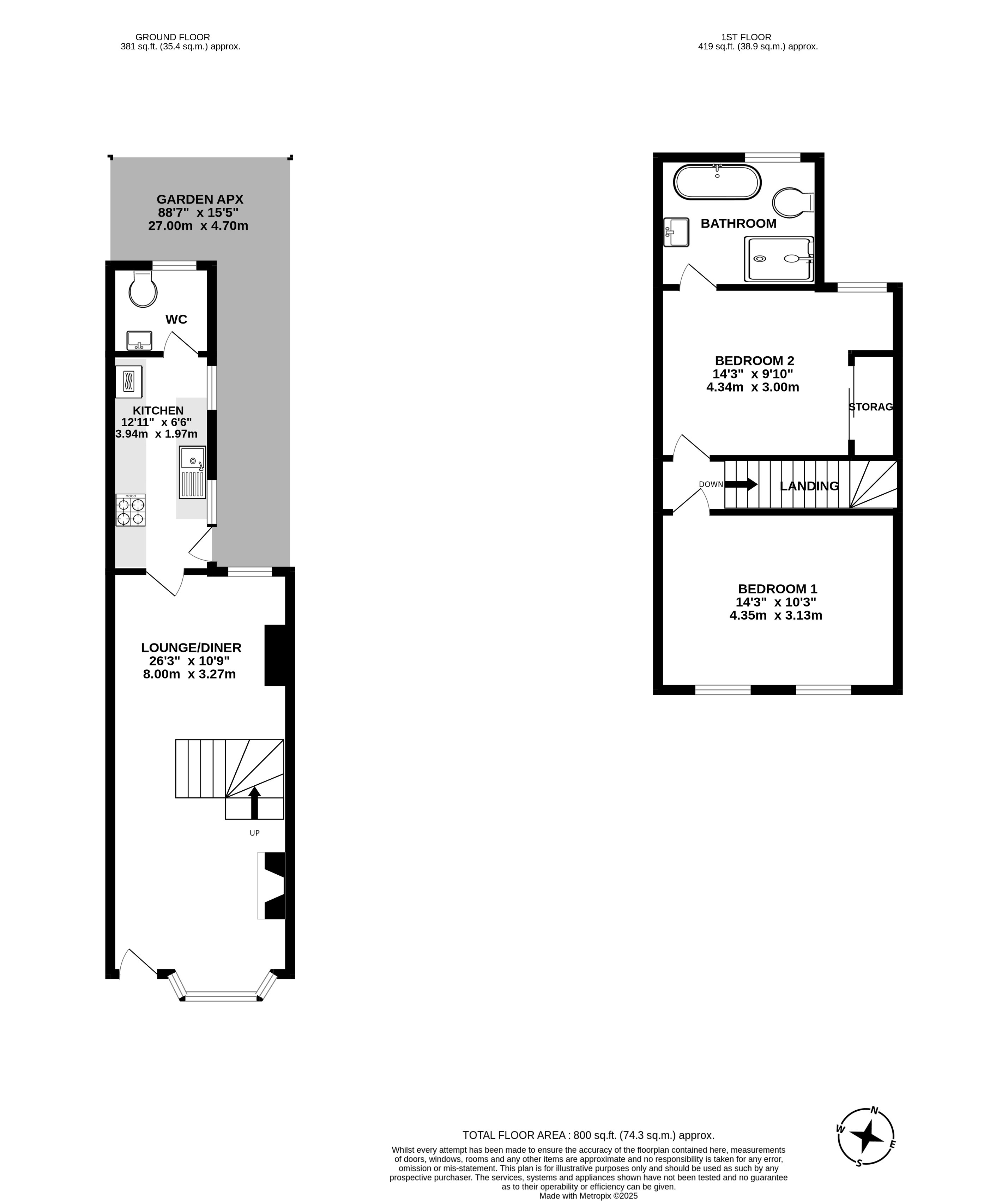 Upstairs, the home offers two well-proportioned double bedrooms, complemented by a stylish family bathroom complete with both bath and separate shower.