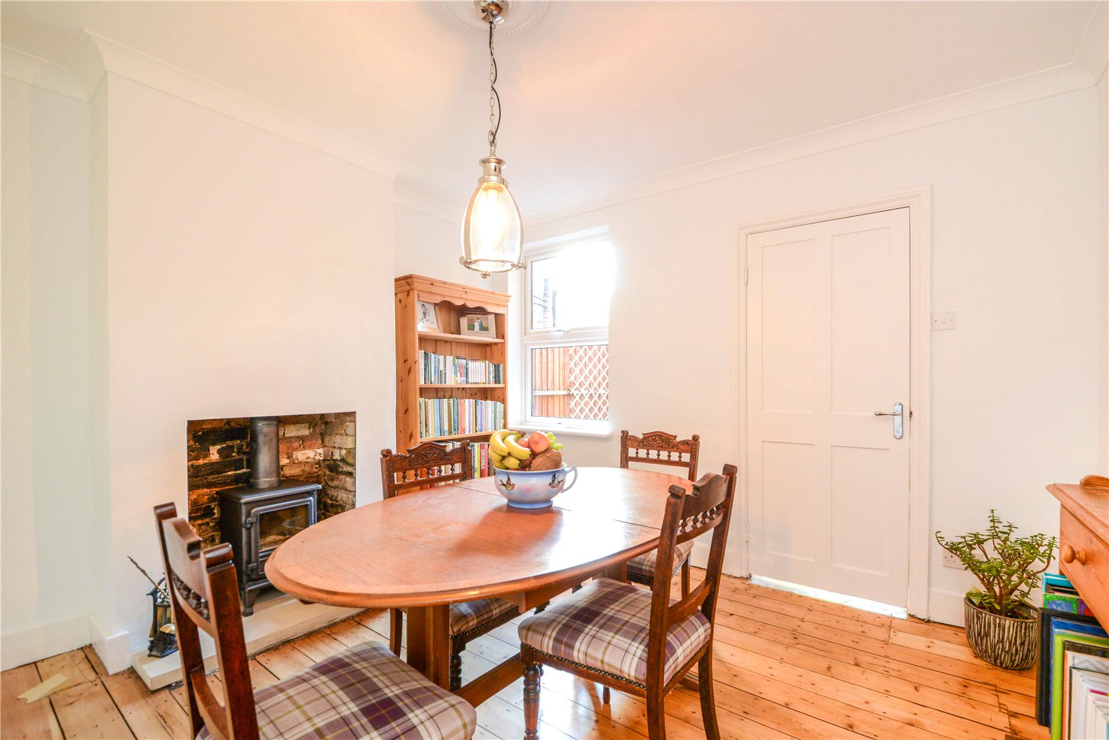 Benefitting from an entrance porch, spacious and bright bay fronted living room with wood floors, good sized dining room, also with wood flooring and a bespoke fitted kitchen.