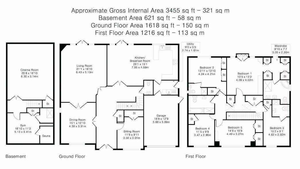 The accommodation on the ground floor comprises a generously sized open plan kitchen breakfast room with modern fitted appliances, leading out to the south facing garden. Additionally, there is a spacious living room with a striking feature fireplace and direct access to the garden, a separate dining room, and an additional reception room. Completing the ground floor is a utility room with side access, a guest W/C and ample storage space.