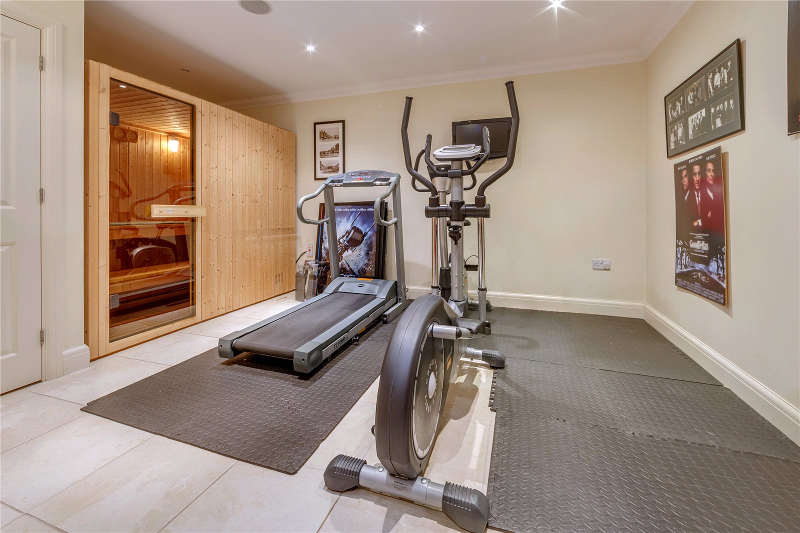 The lower ground floor of the house features a home cinema, a gymnasium that leads to a sauna room and a shower room.