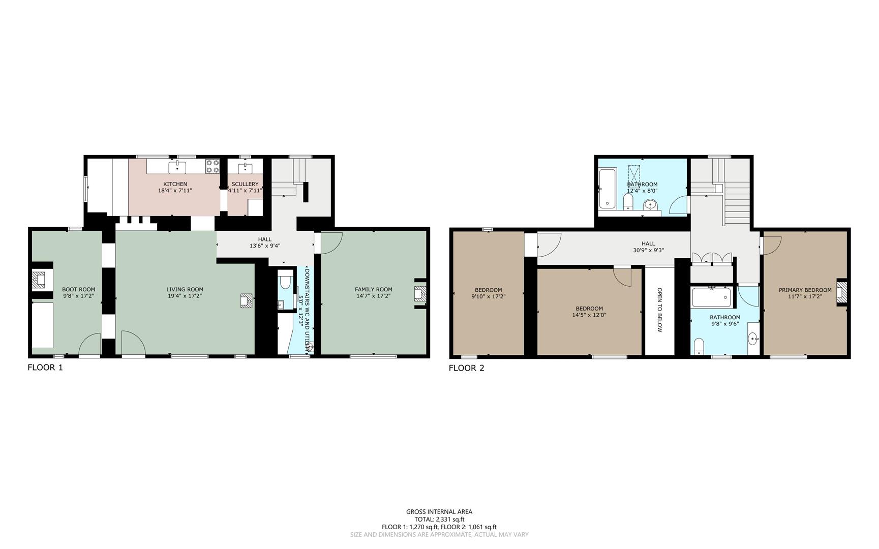 - Dining Hall, Living Room, Kitchen, Scullery, Boot Room and Laundry