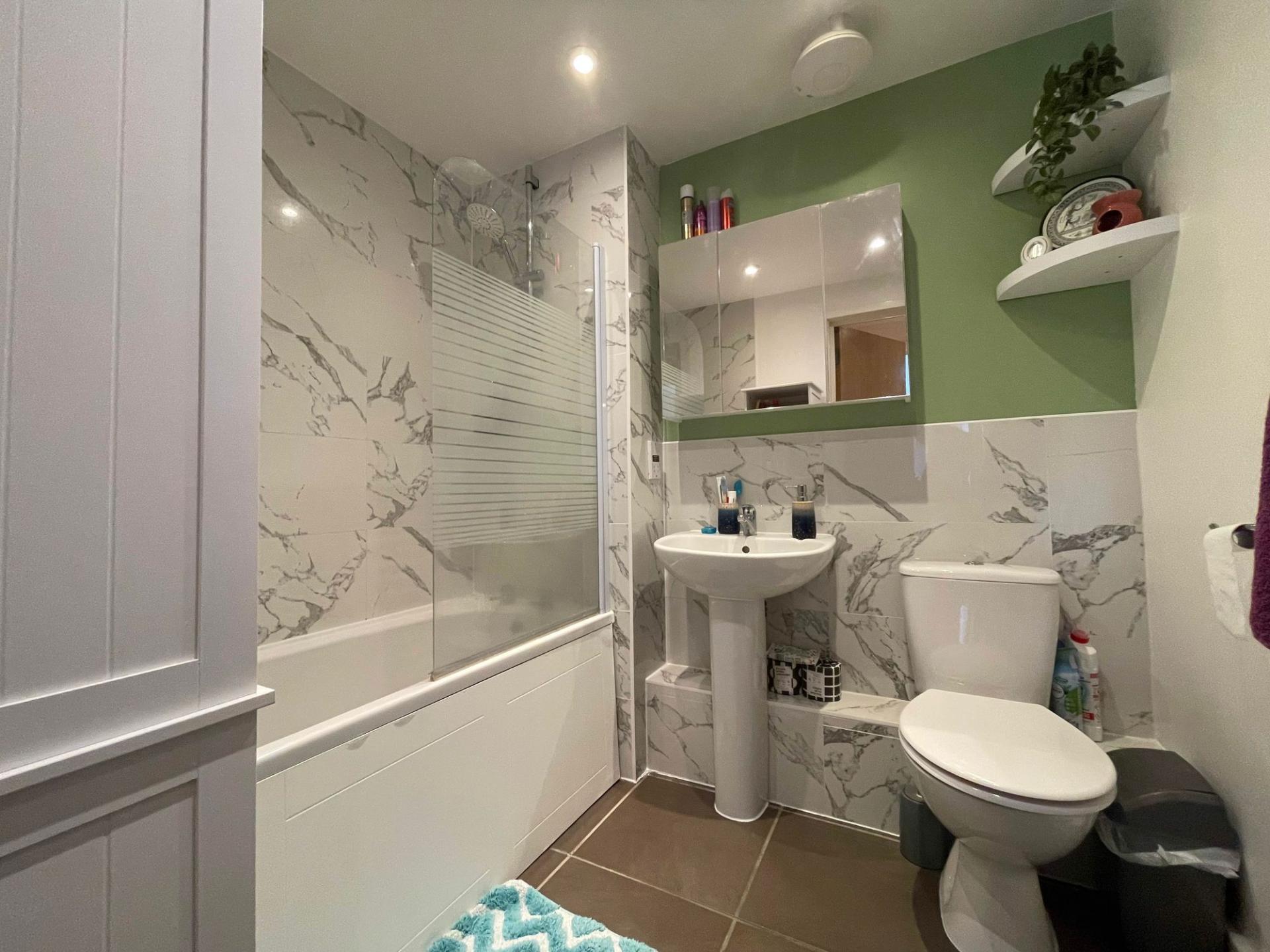 - Open Plan Kitchen Including Appliances And Modern White Bathroom