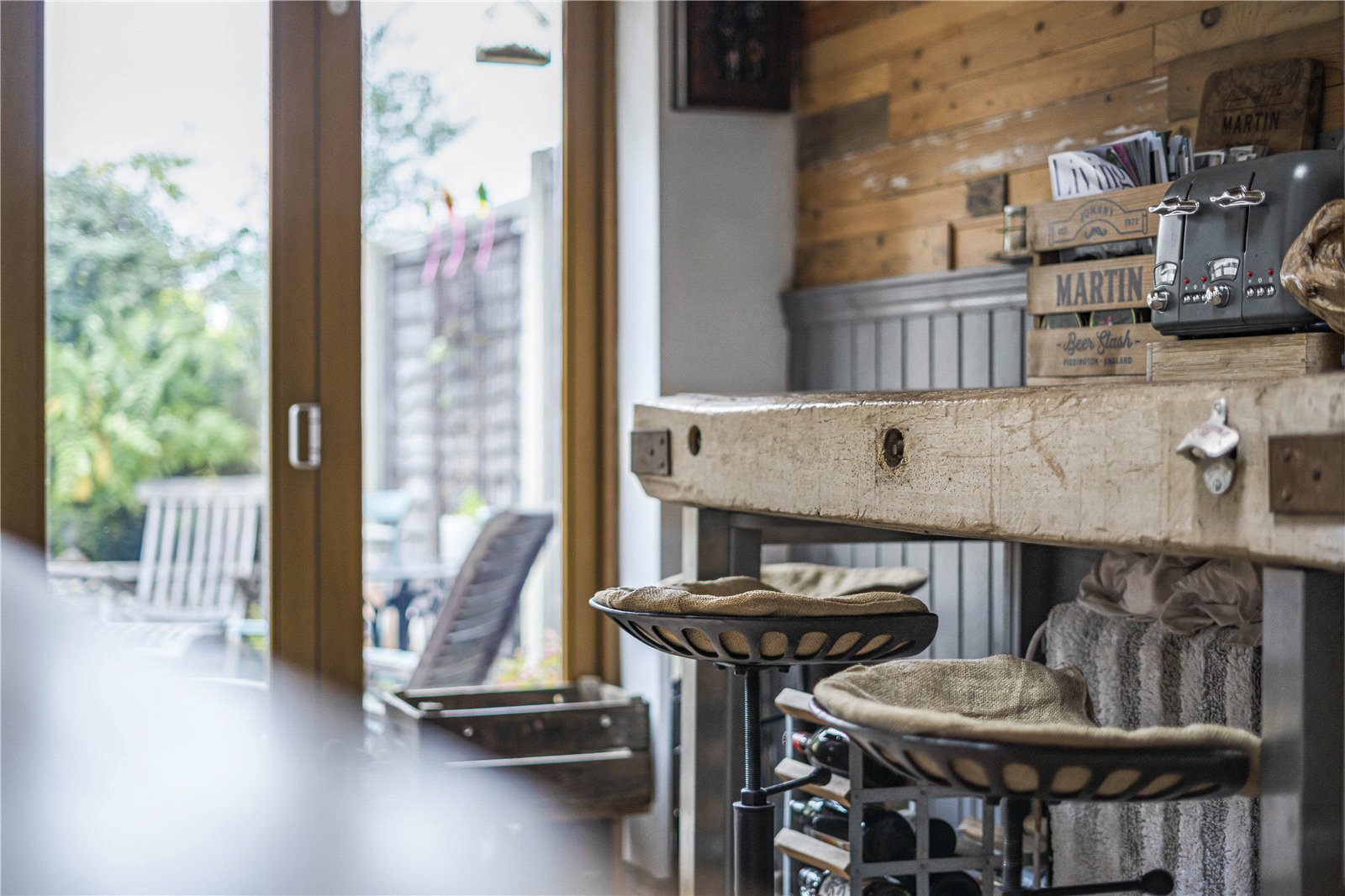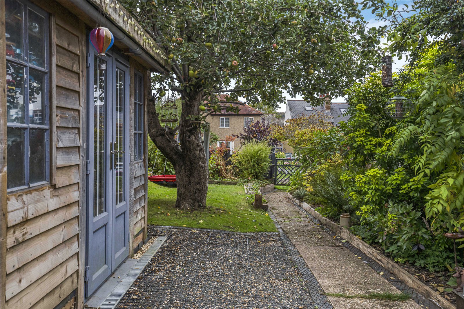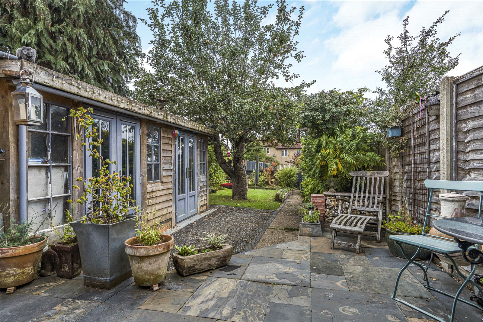 The garden itself is a delight - private, green and mature, with a beautiful apple tree, a paved terrace for outdoor dining, and the much-loved ‘tractor view’ bench overlooking the surrounding farmland. A workshop and shed add practicality, and the overall feeling is one of calm and connection to nature.