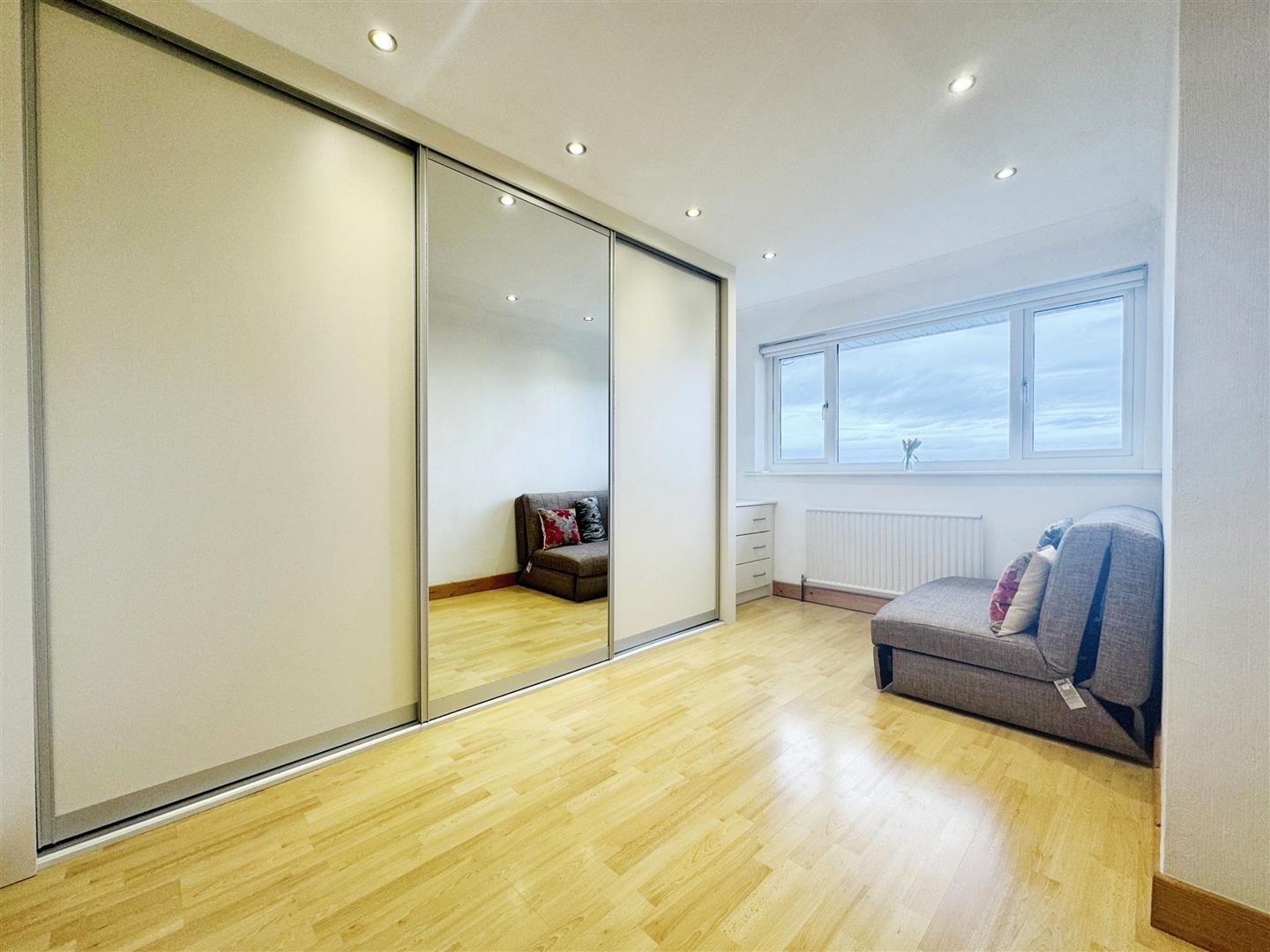 Bedroom 3 - Double glazed window, fitted wardrobes, laminate floor & radiator.