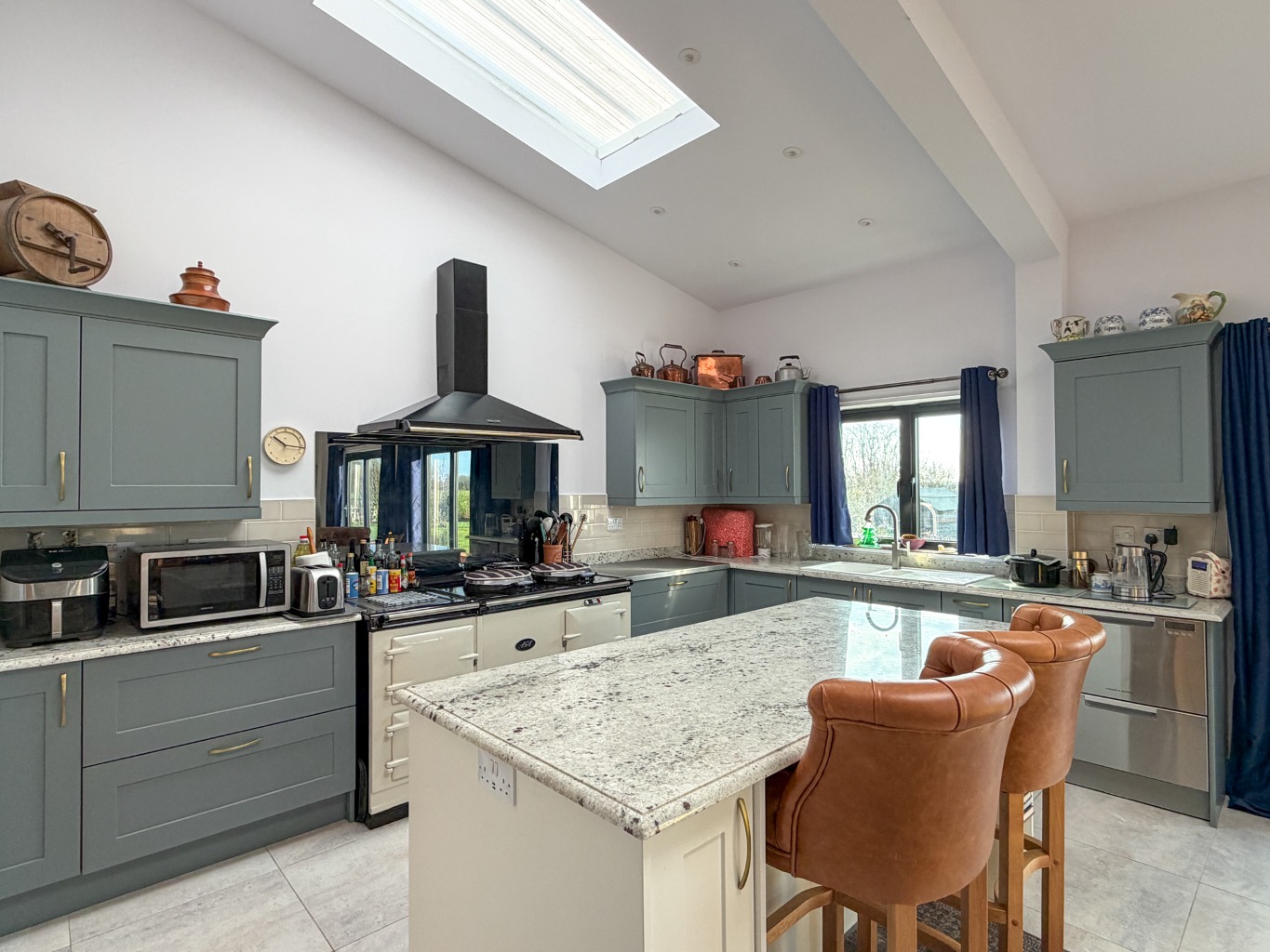 - 43ft Open Plan Kitchen & Living Space under a Mono-Vaulted Ceiling with Twin Bi-Fold Doors and fitted in Stylish Units featuring Bevelled Edged Granite work tops, 4 Oven Aga, Fisher Paykel Dishw...