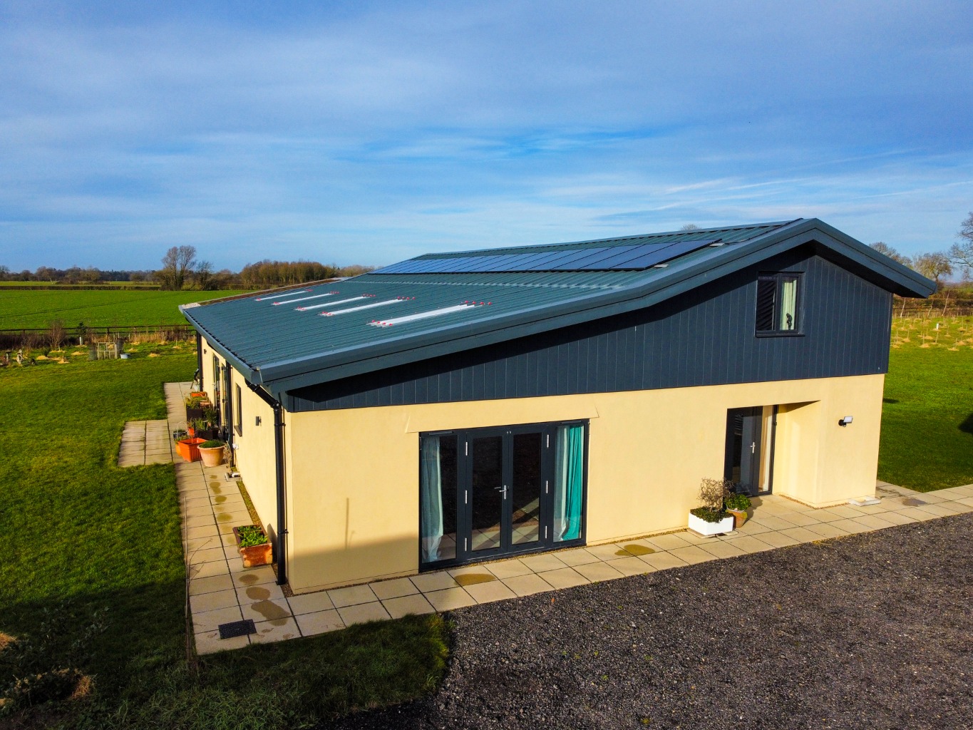 - Double Glazed Windows & Doors, Ground Floor Underfloor Heating, with Radiators on the First Floor via Electric Air Source Heat Pump,, plus Solar Roof Panels and Battery