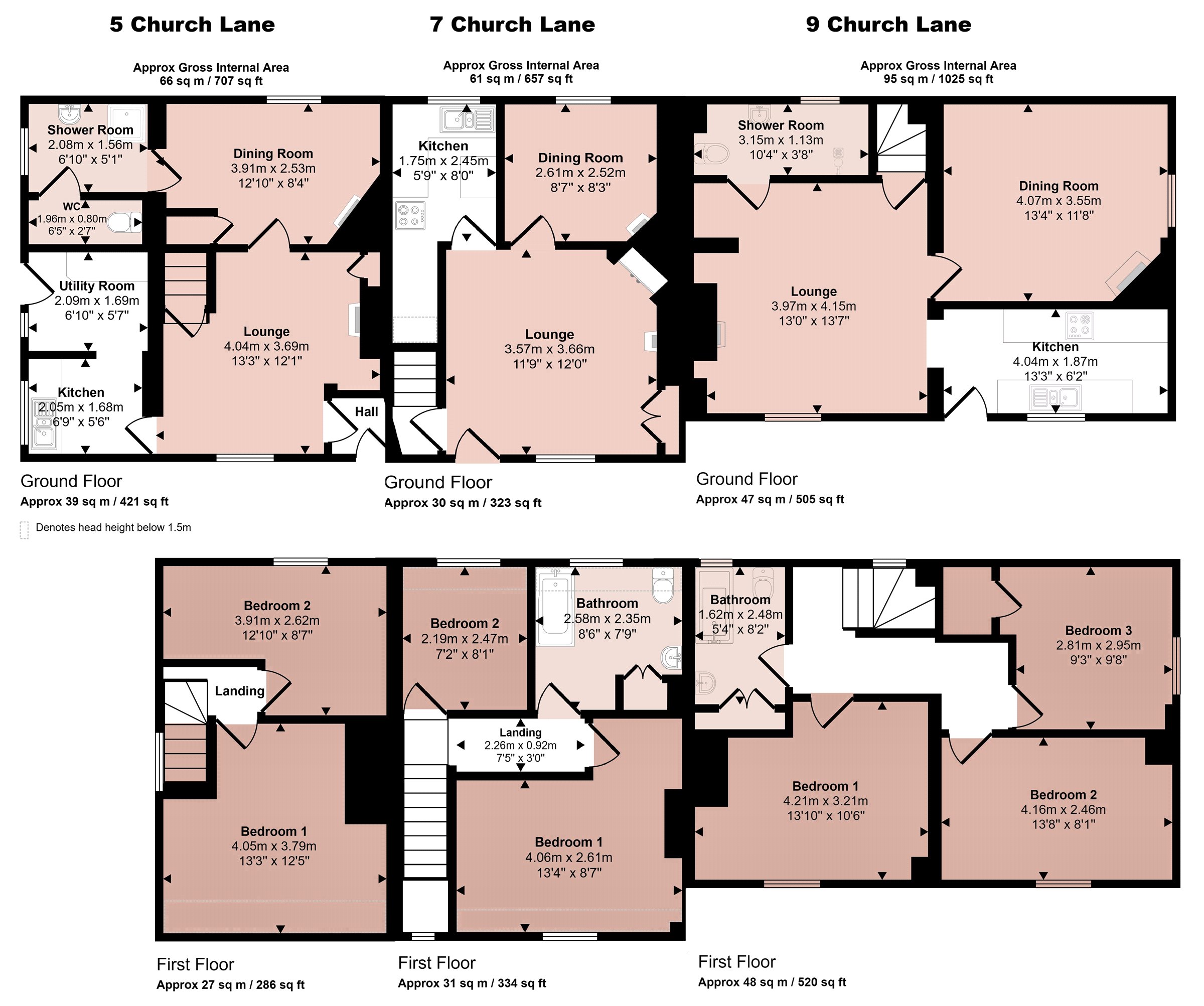 9 Church Lane has oil central heating with accommodation comprising lounge, kitchen, dining room, wet room, three bedrooms and further bathroom.
