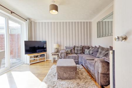 LOUNGE/DINER 14' 4" x 12' 1" (4.37m x 3.68m) Wood effect flooring. Radiator. Coved and artexed ceiling. Double glazed patio doors to rear. Access to under stairs storage.