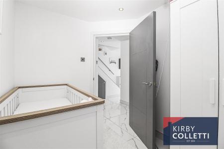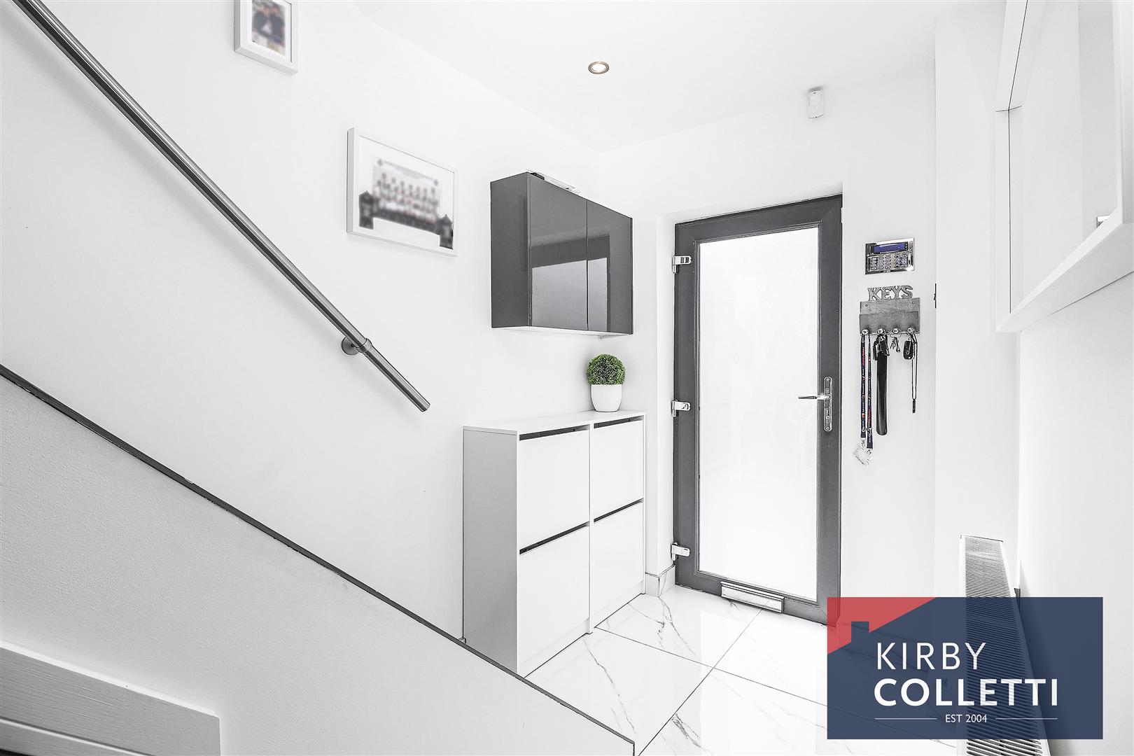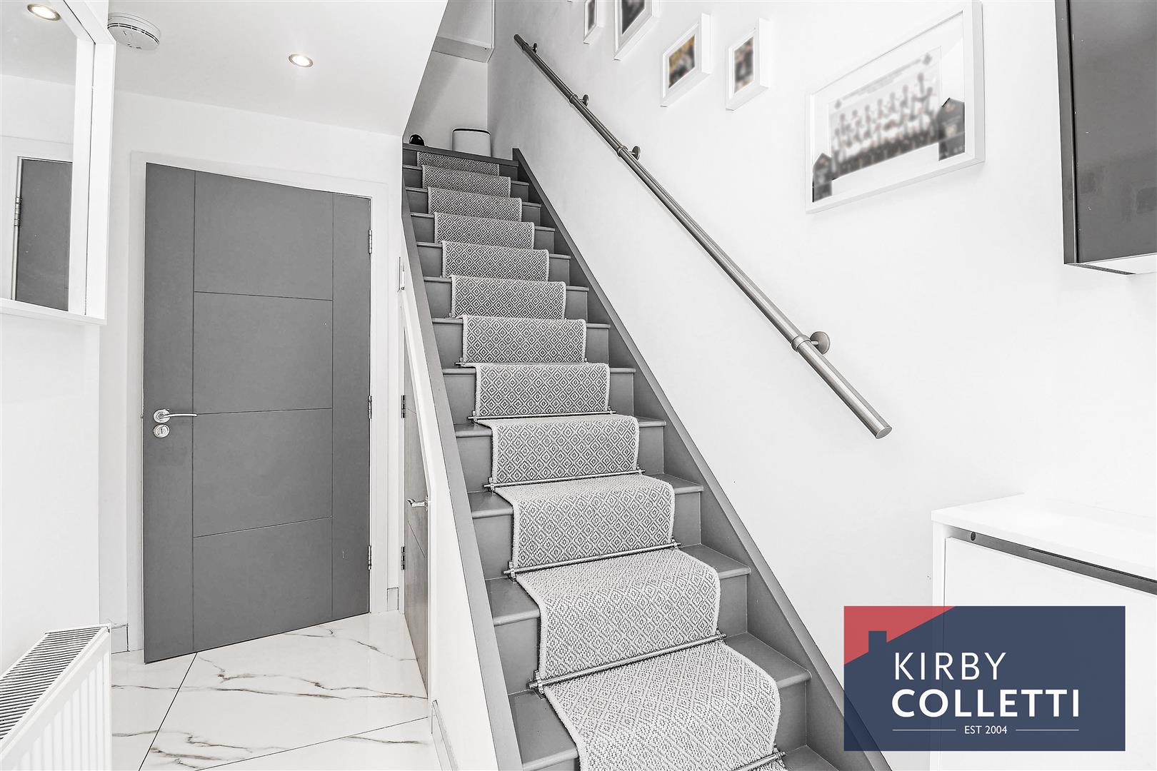 Entrance Hall - Stairs to first floor. Understairs storage cupboard. Tiled floor. Recessed spotlights. Wall mounted cupboard housing fuse box.