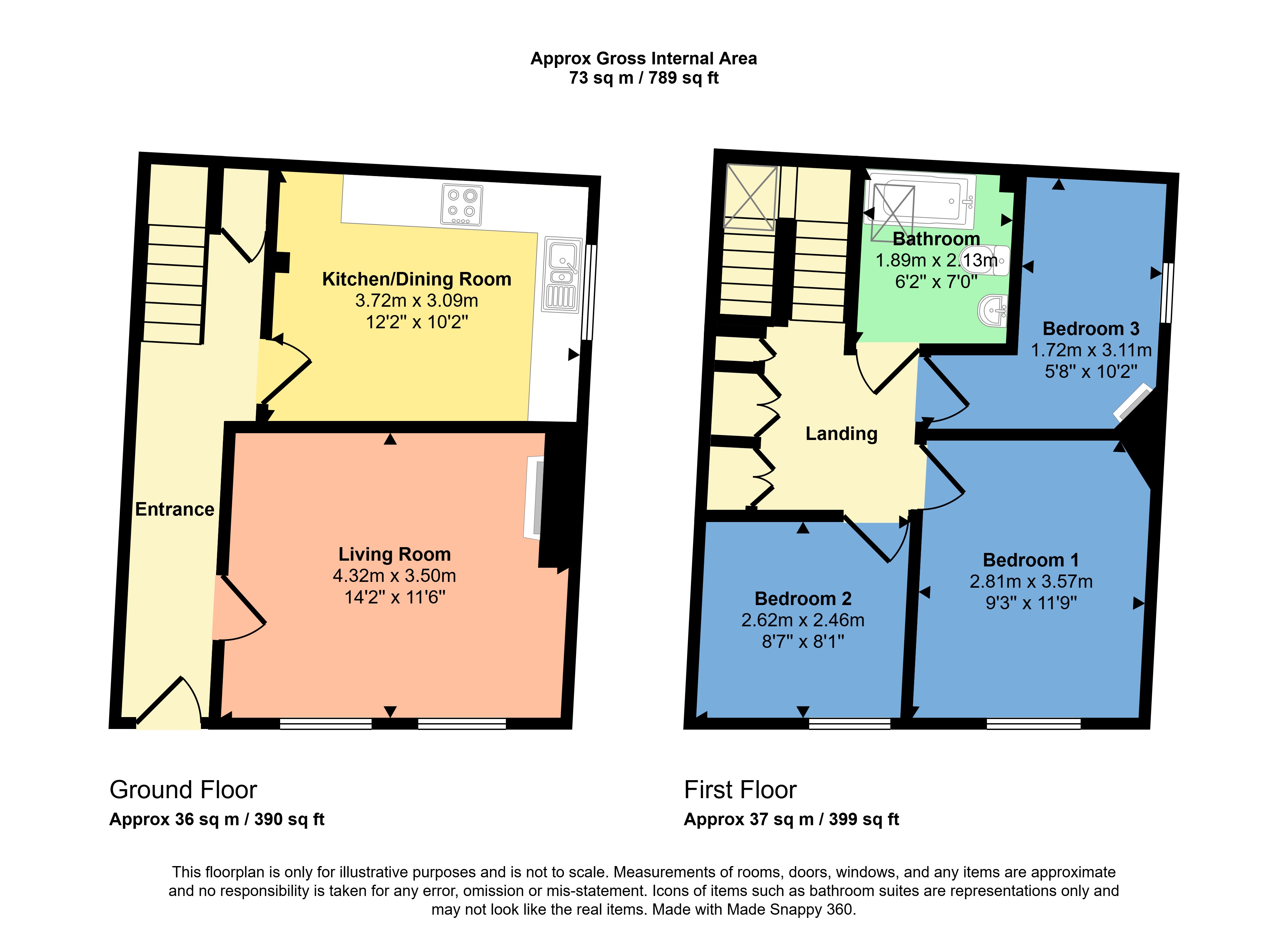 - Three bedrooms two doubles and a charming single with feature fireplace