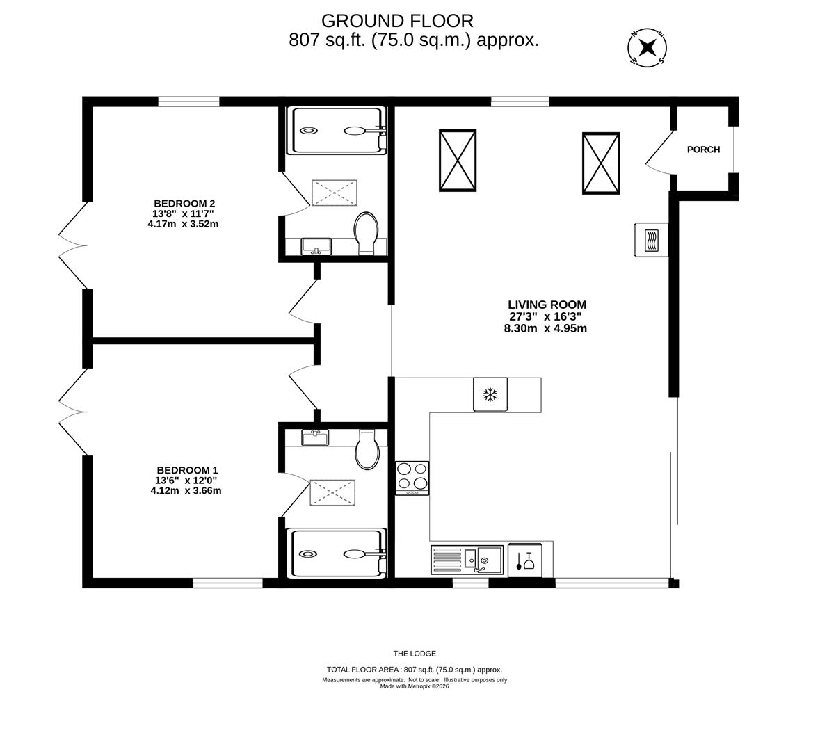 The accommodation benefits from oil fired underfloor central heating and a wood burning stove and briefly comprises; entrance porch, open plan kitchen, sitting / dining room, bedroom 1 is a double room (King size bed) with ensuite shower room and bedroom 2 is a twin room with an ensuite shower room, both bedrooms have French doors opening onto the decking which extends around the front and sides of the Lodge.