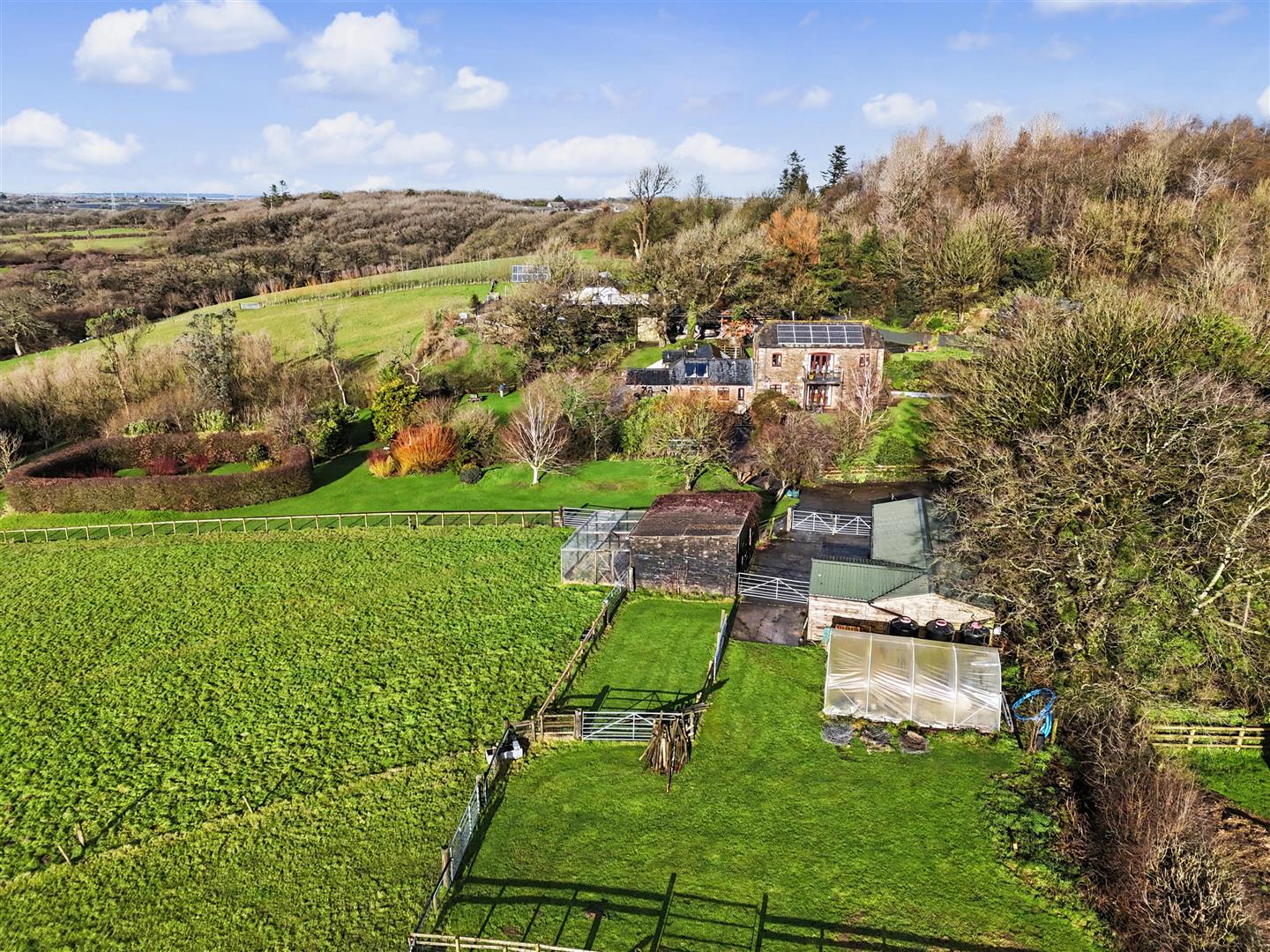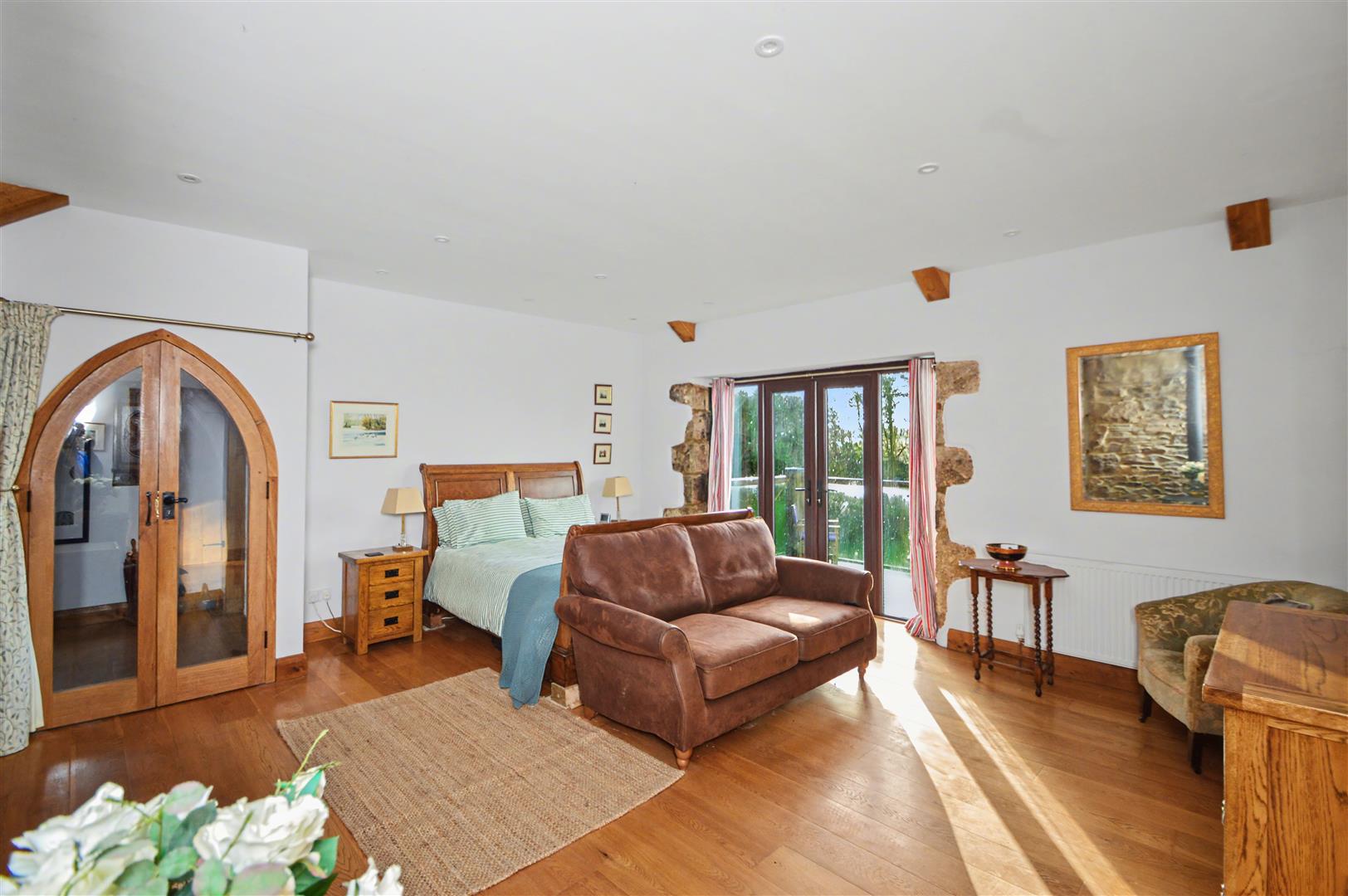 The accommodation briefly comprises; on the ground floor Sitting room; woodburner, French doors to the patio. Kitchen / dining room; vaulted ceiling with exposed oak 'A' framed beams, Velux windows and twin French doors to the rear opening onto the patio and lawned garden enjoying far reaching countryside views across the farm land and Tamar Valley. Solid oak fitted Kitchen, black granite worksurfaces inset Neff electric oven, dishwasher, full height pull out larder, large larder fridge with extensive drawers and cupboards with a large central island with breakfast bar, Travertine flooring, electric Aga with Aga intelligent management system (AIMS), four ovens and a dual ceramic hob to the side, woodburner. Utility, French doors to the front opening onto the patio fitted base units inset sink, space for washing machine, walk in larder cupboard, utility, cloakroom and 2 double ensuite bedrooms. On the first floor; master bedroom suite, balcony enjoying far reaching views, woodburner; dressing room, ensuite bathroom and 2 further ensuite double bedrooms.