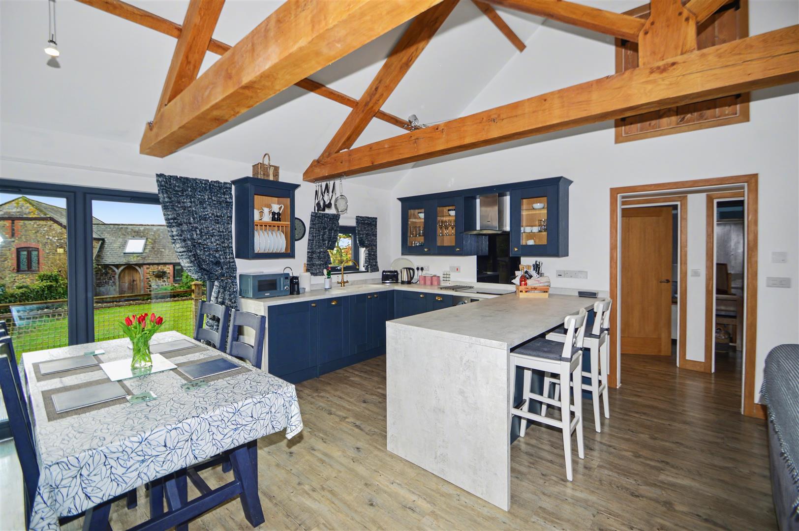 The Linhay - The Linhay is a substantial 5 bedroom barn conversion presented to a high level of finish with solid oak flooring throughout the ground and first floors with the exception of the kitchen, utility and ensuites which have flagstone floors. The property benefits from oil fired central heating, solid oak double glazed windows and doors and photovoltaic solar panels.